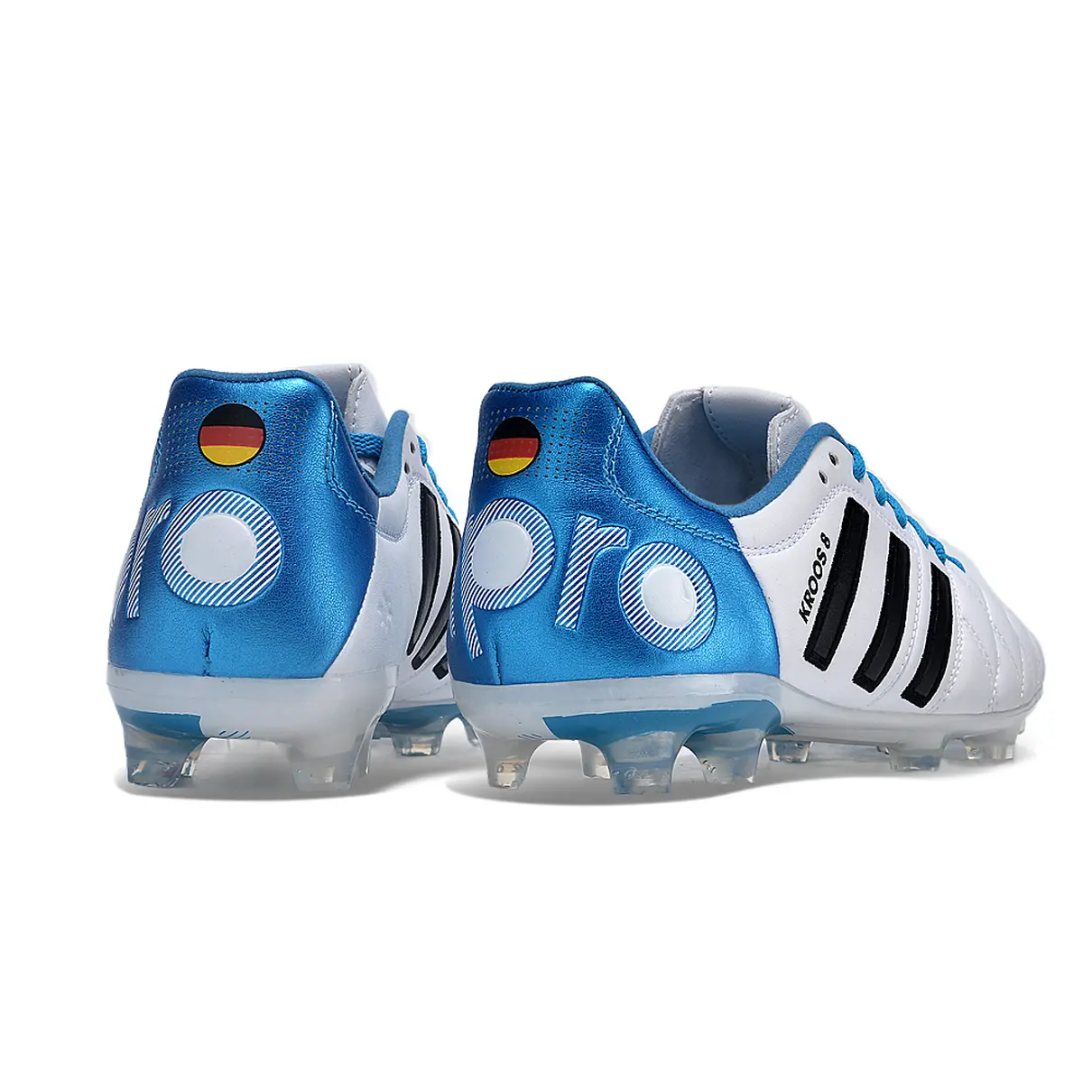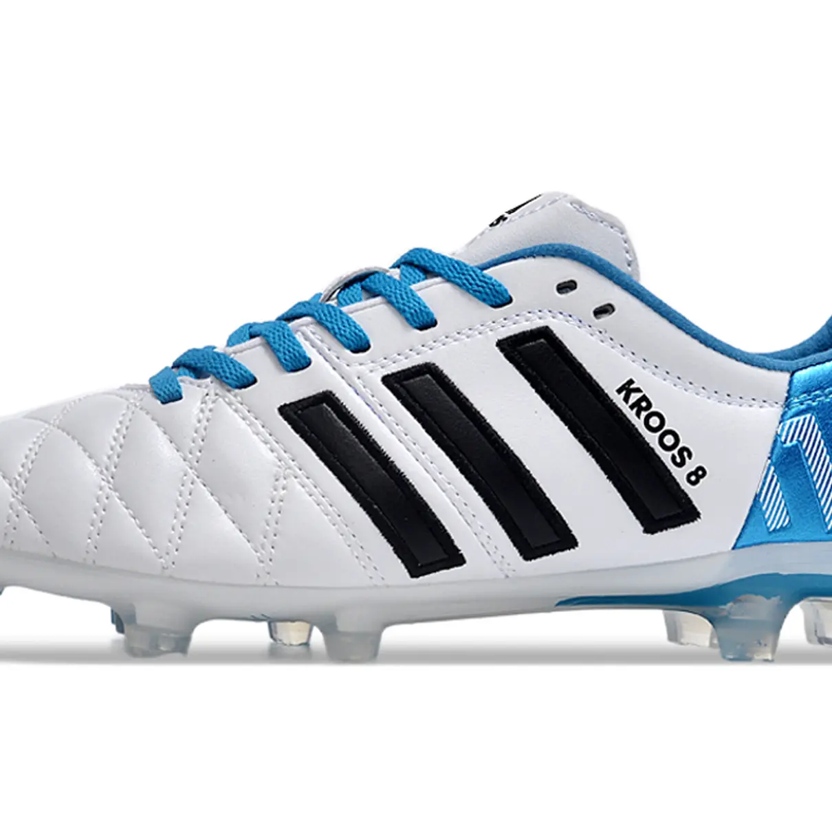 A Chuteira de Campo Adidas AdiPure 11 Pro FG em branco e azul, dedicada a "Toni Kroos", é uma expressão de elegância e desempenho no futebol. Desenvolvida para proporcionar toque preciso, conforto e estabilidade em campos de grama natural, esta chuteira homenageia o estilo distinto do renomado meio-campista.