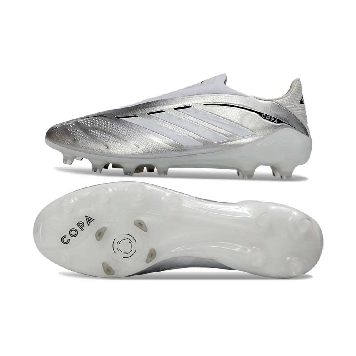 A Chuteira Copa Pure Elite Laceless foi projetada para atletas que ditam o ritmo da partida com visão e técnica. O cabedal Fusionskin Premium em configuração Laceless proporciona um ajuste firme e contato máximo com a bola, ideal para passes de alta precisão.
