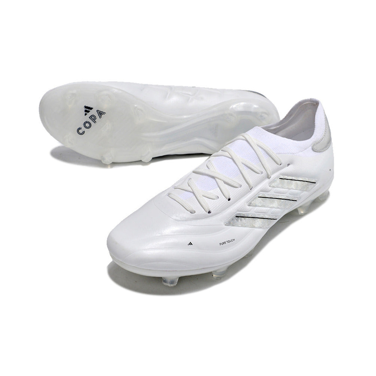 A chuteira Adidas Copa Pure II+ FG Branca é uma opção elegante e funcional dentro da renomada linha Copa da Adidas, que é conhecida por combinar tradição e inovação. Projetada para desempenho excepcional em campos de grama natural (gramado), essa chuteira pode oferecer as seguintes características: