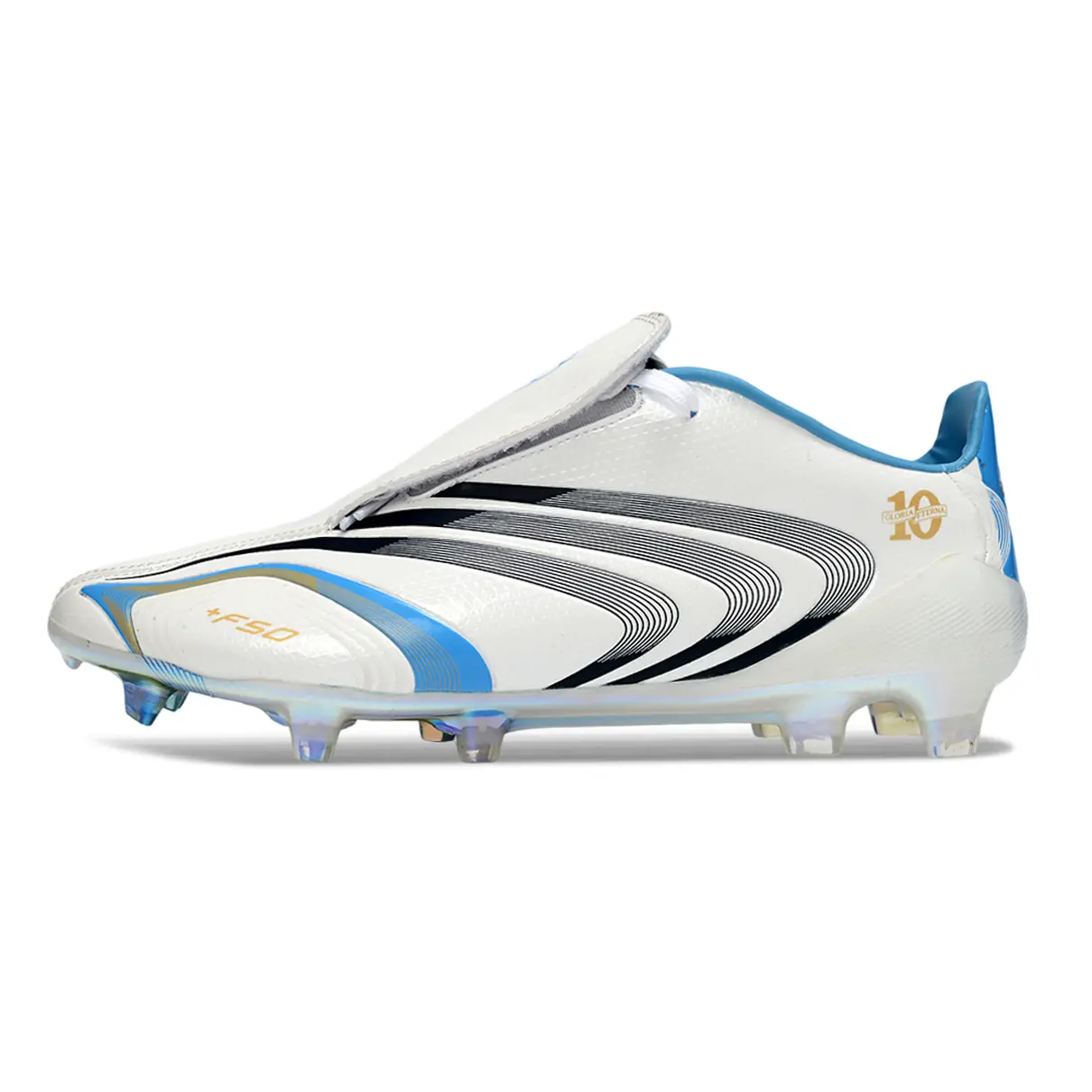 Chuteira Campo Adidas F50 Elite FG – Branco, Azul e Preto "Spider"