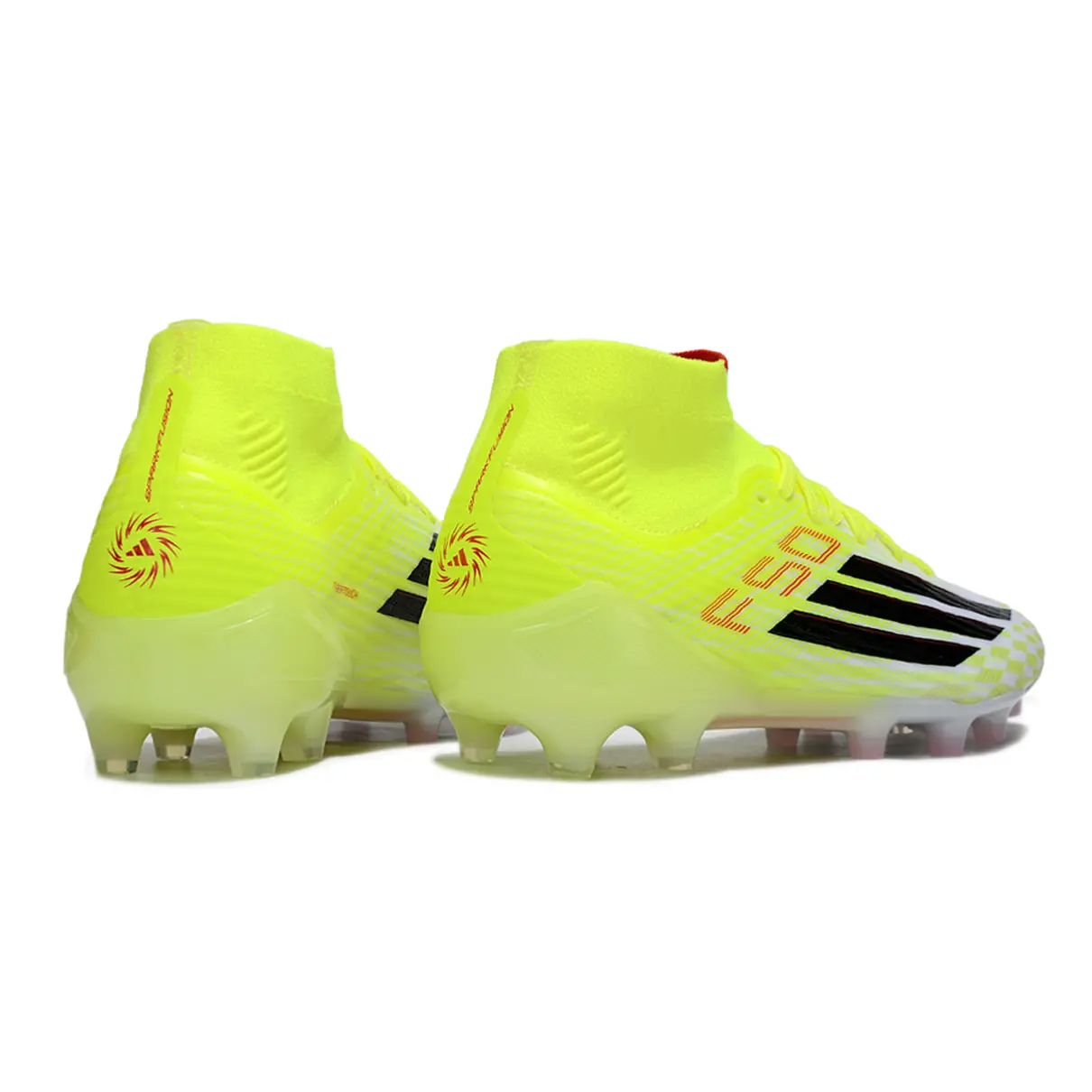 Solado Sprintframe 360: Uma placa de solado projetada para tração multidirecional em gramados naturais (FG). A configuração das travas permite aceleração instantânea e estabilidade em giros de 360 graus.
