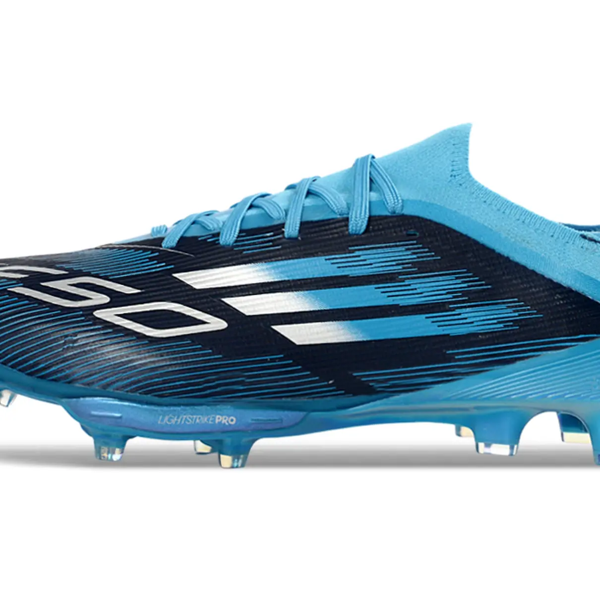 A Chuteira Campo Adidas F50+ FG Azul Claro e Azul Marinho foi desenvolvida para jogadores que buscam velocidade, leveza e controle de bola em partidas de futebol de campo. Com um design moderno nas cores azul claro e azul marinho, o modelo combina estilo e desempenho para quem gosta de um jogo rápido e ofensivo.
