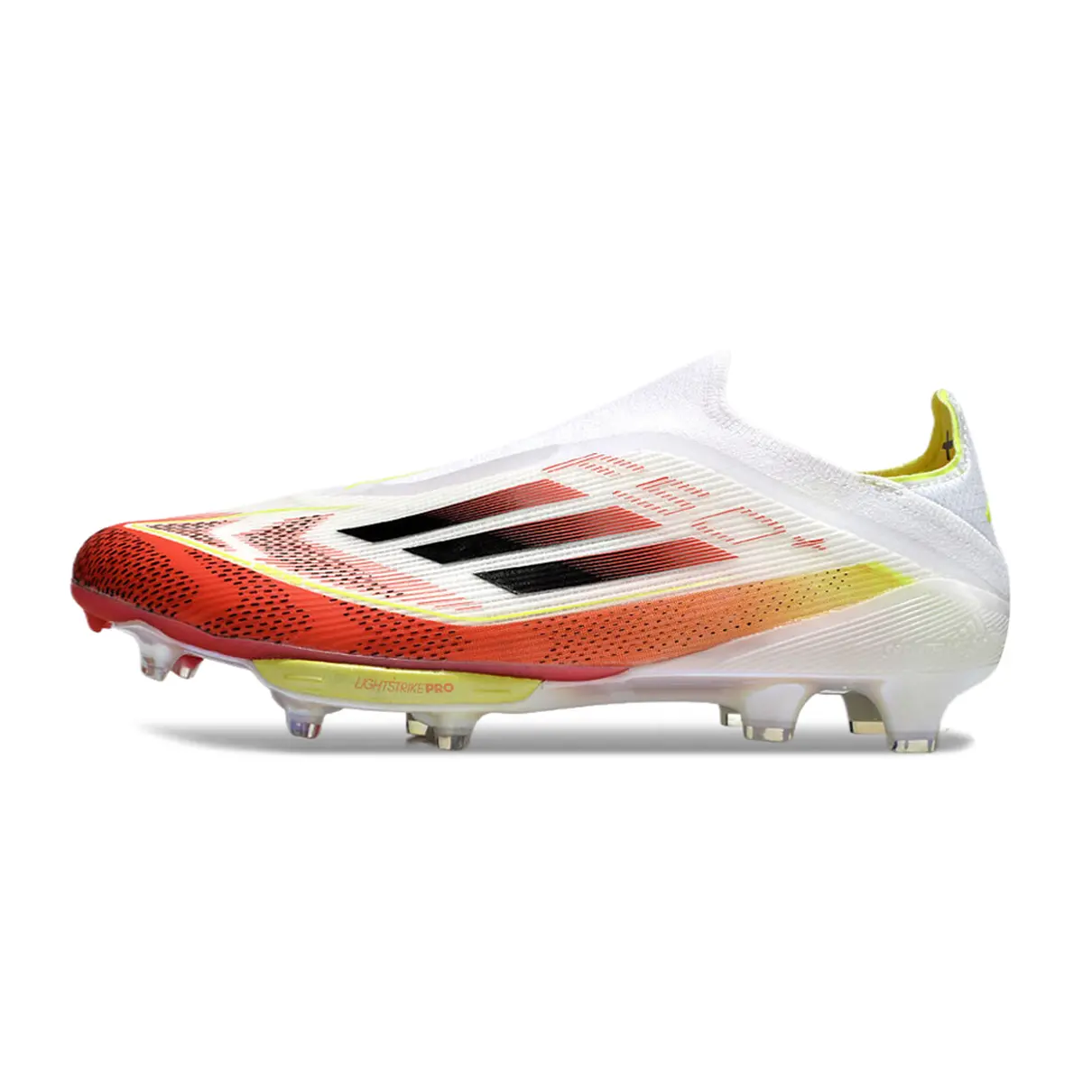 Chuteira Campo Adidas F50+ FG – Branca, Vermelha e Amarela