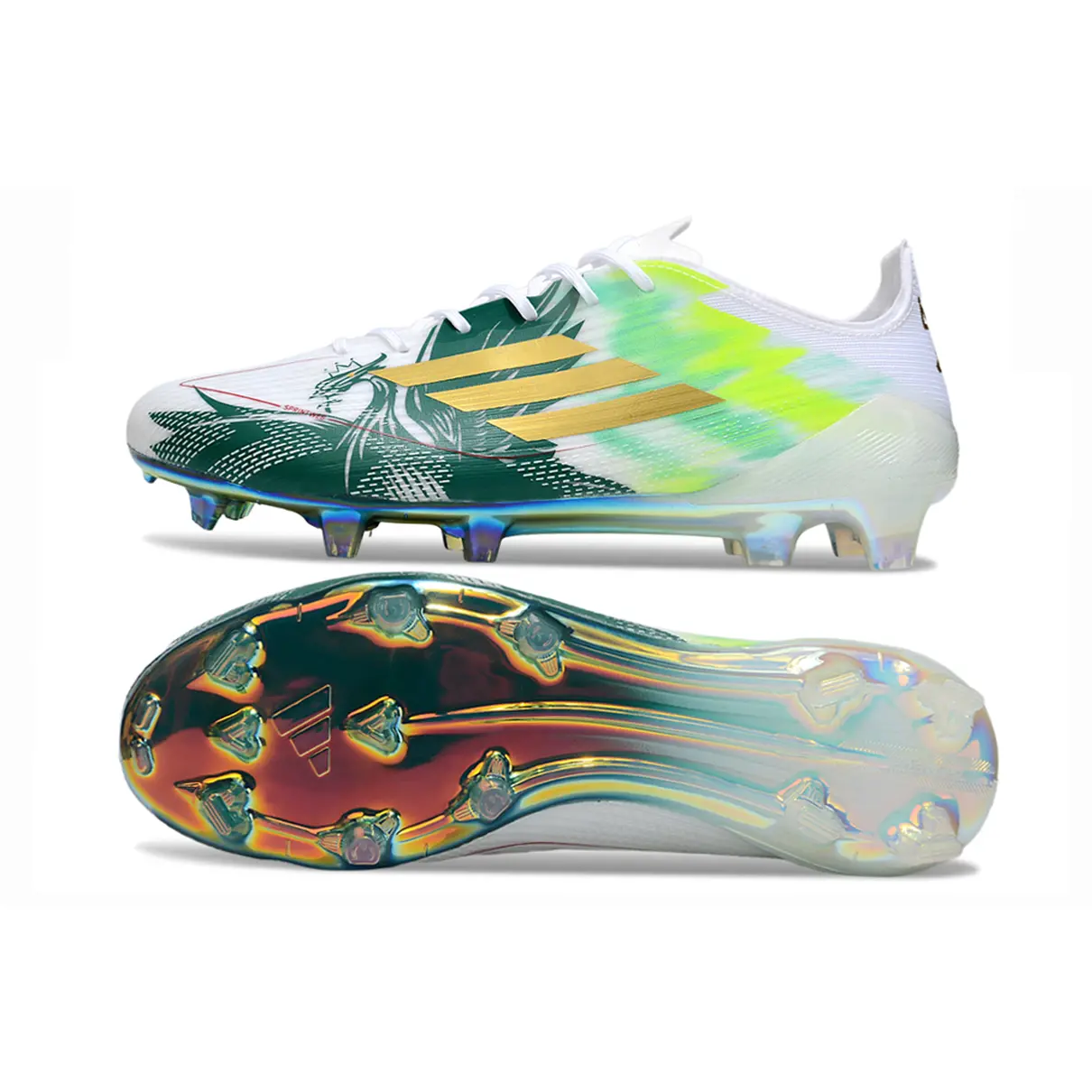 A Adidas F50 FG Branco e Verde combina leveza, tração e um visual limpo que remete às origens da velocidade no futebol. Perfeita para atletas que valorizam precisão, agilidade e impacto visual em campo.