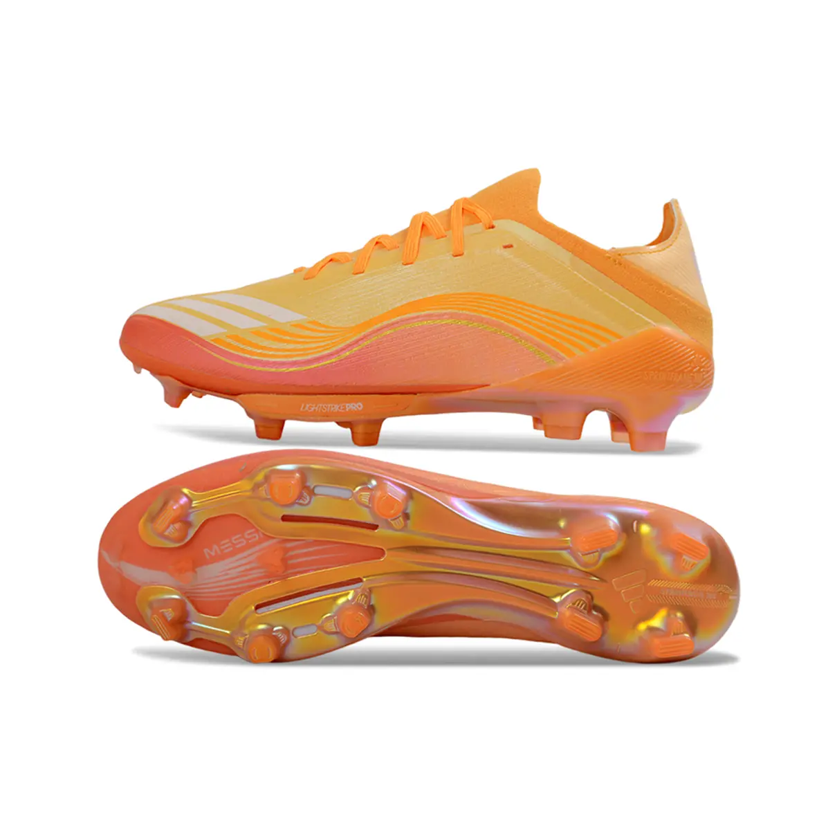 A Adidas F50+ FG na cor Laranja foi forjada para os jogadores que vivem no limite da velocidade. Como uma edição "+" (Plus), ela utiliza os materiais mais avançados da marca para garantir uma resposta imediata a cada arranque. O cabedal ultra-fino aliado ao sistema de cadarços oferece um ajuste personalizado e seguro, permitindo que você drible, corte e finalize com a precisão de um atleta de elite em gramados naturais.