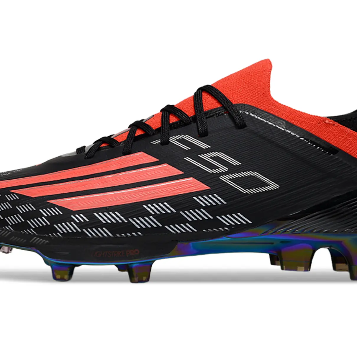 Com o visual marcante em preto, branco e vermelho, a F50 FG é perfeita para quem joga com intensidade, confiança e personalidade.