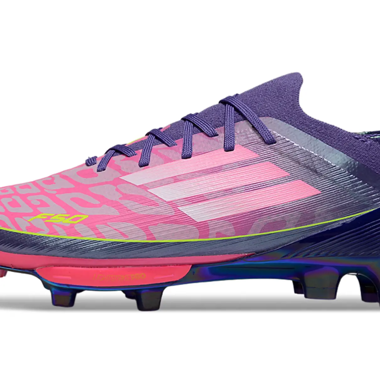 A Chuteira Campo Adidas F50+ FG Roxo, Rosa e Verde "Lamine Yamal" foi criada para jogadores que buscam velocidade máxima, leveza e precisão nos gramados naturais firmes. Inspirada na ousadia e no talento do jovem craque Lamine Yamal, essa edição especial se destaca pelo visual vibrante em roxo, rosa e verde, unindo estilo moderno e performance de elite.