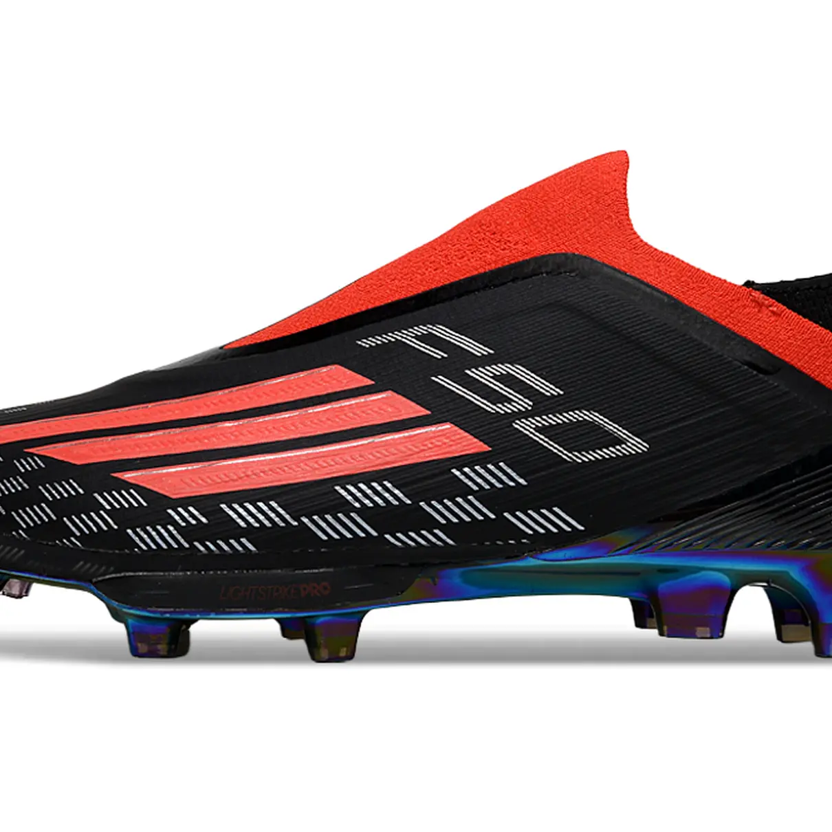 A Chuteira Campo Adidas F50 LL FG Preto, Branco e Vermelho combina velocidade, leveza e inovação para jogadores que buscam performance máxima em gramados naturais firmes. Parte da icônica linha F50, essa versão Laceless (sem cadarços) oferece um ajuste limpo e toque direto na bola, garantindo precisão e controle superiores.