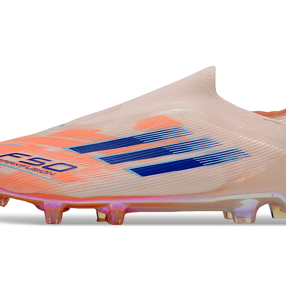 A clássica Adidas F50 volta com um visual marcante em rosa com azul, combinando ousadia, performance e um design que grita velocidade.