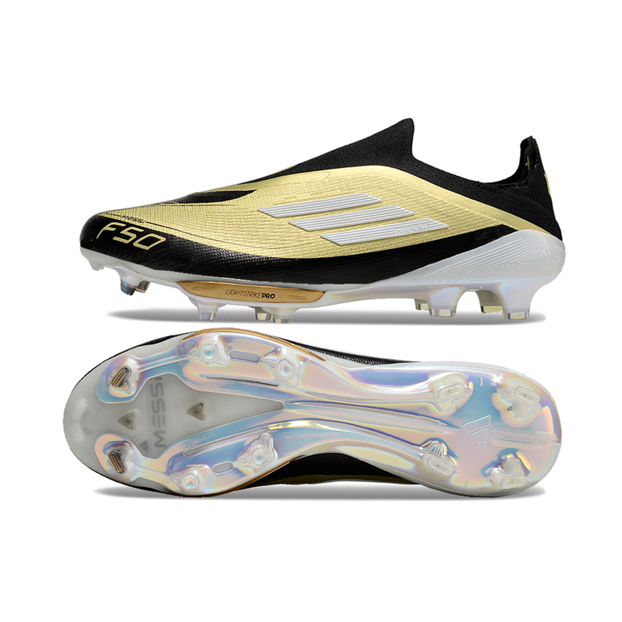 Chuteira de Campo Adidas F50 + LL Messi FG – Preto e Dourado "Triunfo Dorado Pack"