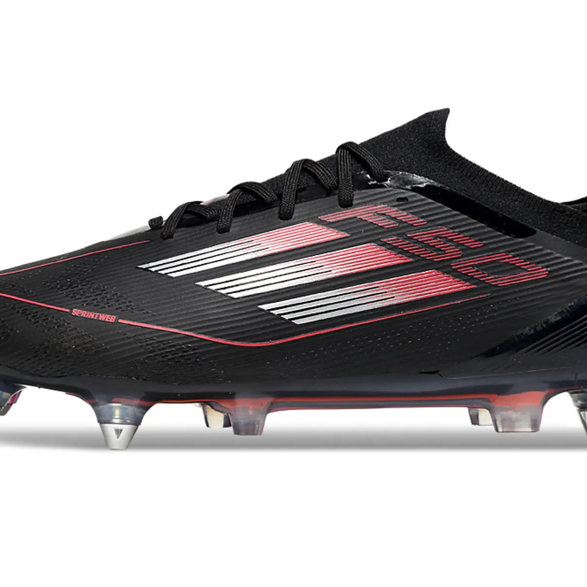 O cabedal sintético texturizado garante controle preciso da bola em alta velocidade, enquanto as travas de alumínio removíveis proporcionam tração poderosa, ideal para explosões, dribles curtos e estabilidade mesmo em terrenos úmidos. O contraste entre o preto sólido e o vermelho vibrante reforça o estilo imponente da linha F50.
