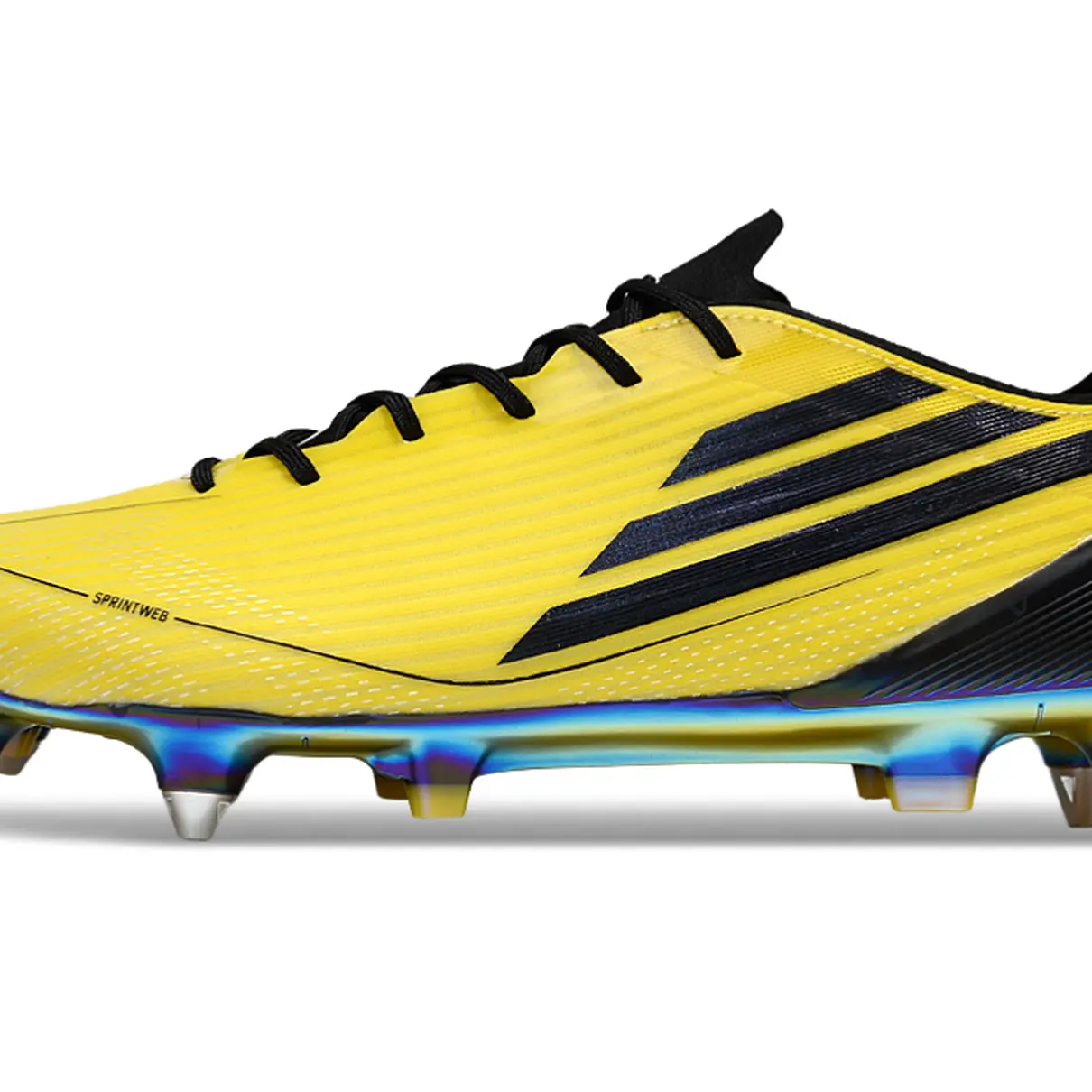Desenvolvida para jogadores rápidos e decisivos, a Adidas F50 combina leveza, velocidade e um visual marcante. Nesta versão em amarelo e preto, o design agressivo reforça a identidade de quem impõe respeito com a bola nos pés.