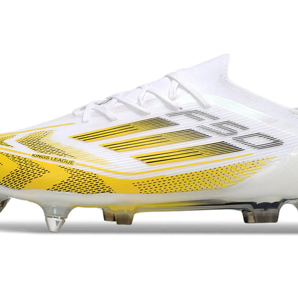 A clássica Adidas F50 chegou em uma versão ⚪???? branco e amarelo que une leveza, explosão e muito estilo! Feita pra quem não dá chance pro marcador.