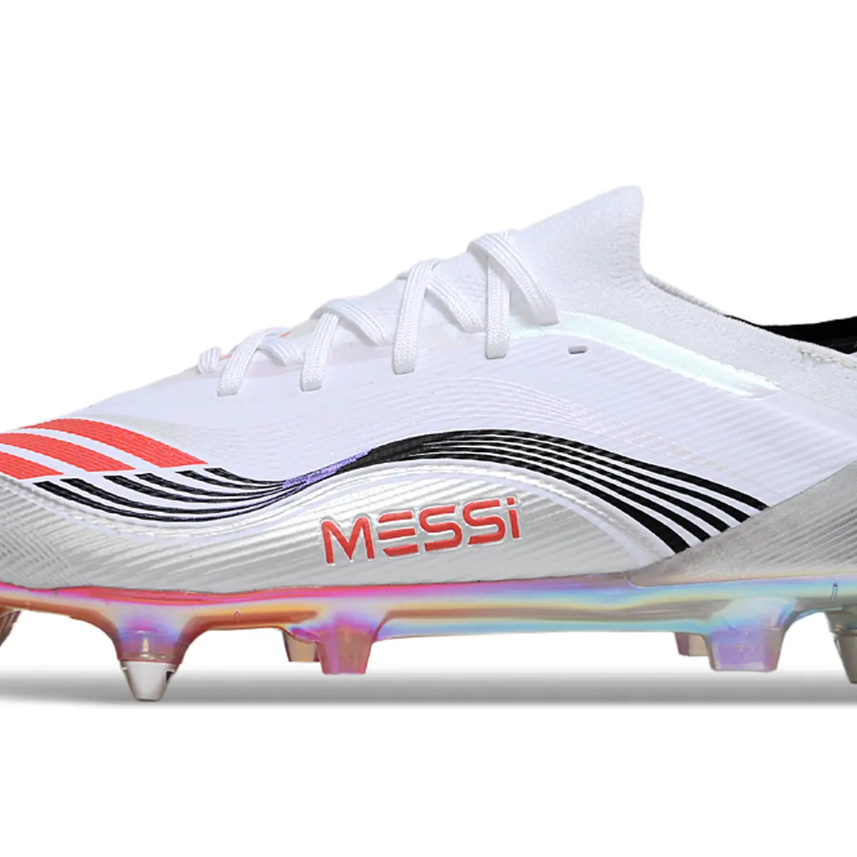 As travas de alumínio garantem tração máxima em gramados naturais, oferecendo estabilidade e segurança para arrancadas explosivas e mudanças rápidas de direção. O cabedal leve e resistente proporciona ajuste firme ao pé e sensibilidade apurada no toque de bola — ideal para quem dita o ritmo do jogo.
