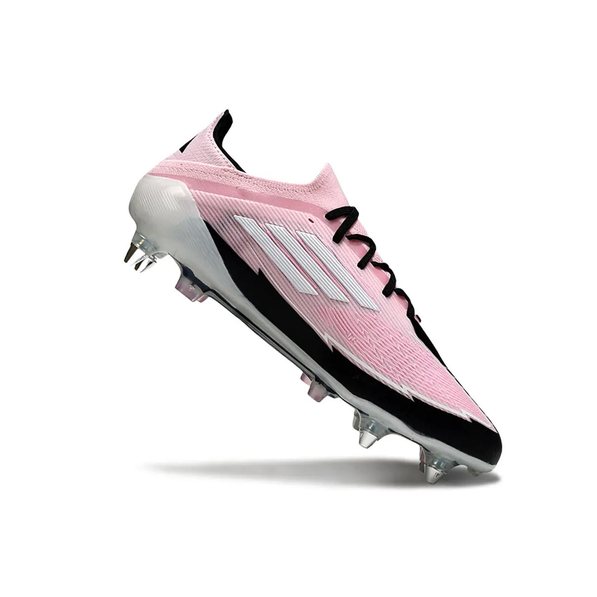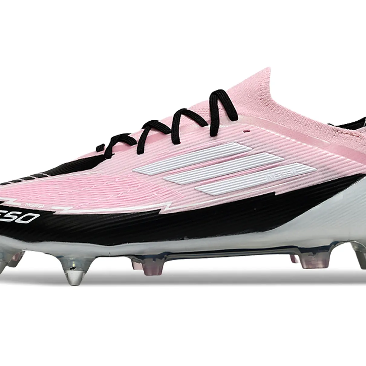 Inspirada em um dos maiores de todos os tempos, a Adidas F50 “Messi” chega com visual marcante em rosa e preto, combinando ousadia e velocidade em cada detalhe. Ideal para gramados naturais, essa versão com travas de alumínio oferece tração agressiva, ideal para quem joga no mais alto nível.