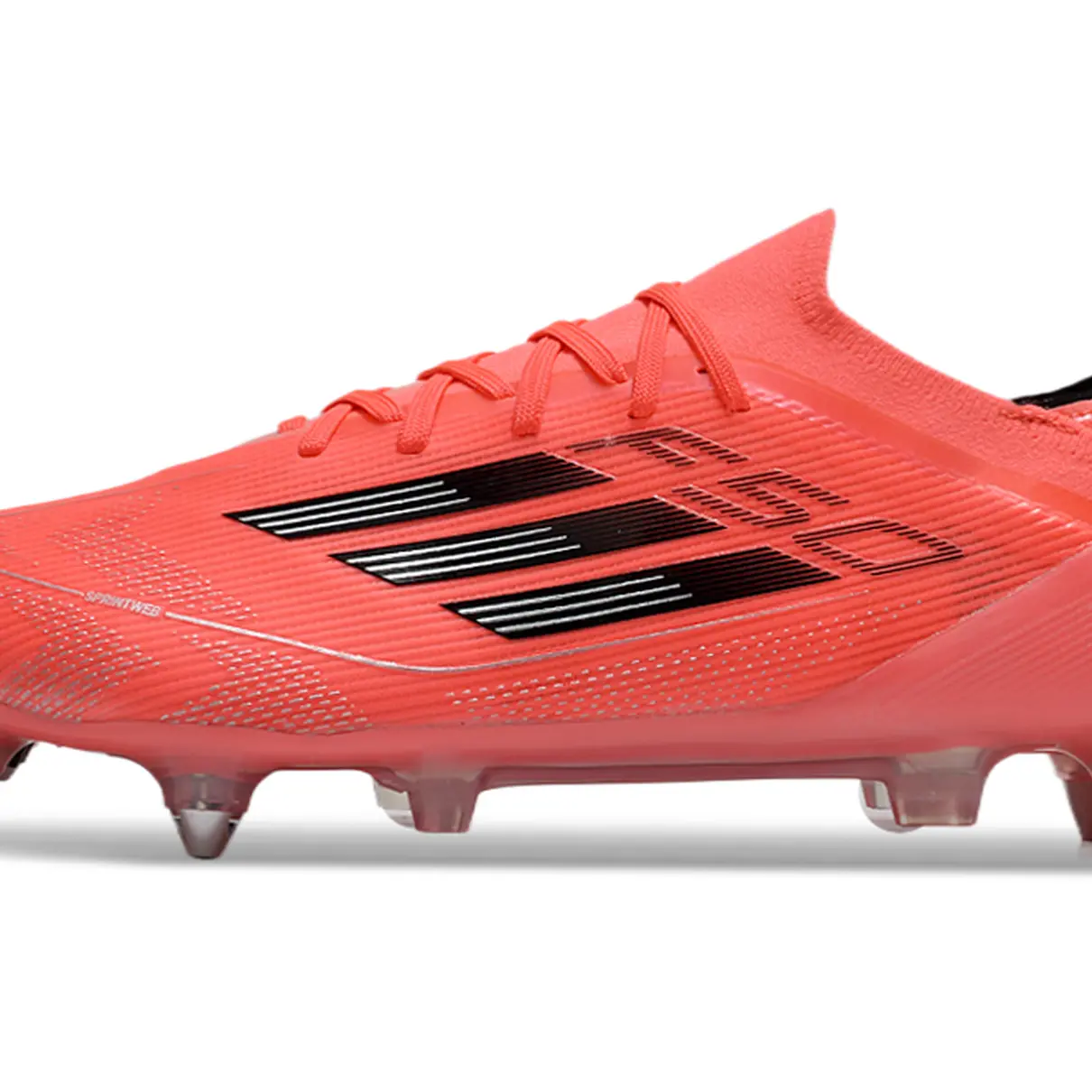 Velocidade, agressividade e atitude definem a Adidas F50 com travas de alumínio. Combinando o vermelho intenso com o preto clássico, essa chuteira de campo é ideal para jogadores que querem se destacar tanto no visual quanto na performance.