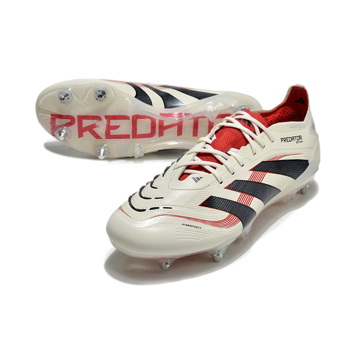 A Adidas Predator Elite FT 30 Ponta de Alumínio Bege, Vermelha e Preta é para os jogadores que querem se destacar não só no estilo, mas também no desempenho em campo. Com ela, cada movimento será preciso, rápido e forte, dominando o jogo com total controle e confiança.