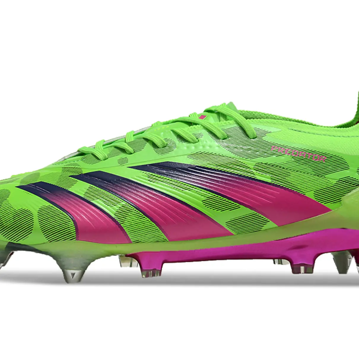 Com um visual ousado e cheio de personalidade nas cores verde e rosa, a Adidas Predator Elite é a chuteira ideal para quem quer dominar o jogo com estilo e precisão. Criada para gramados naturais, ela oferece o equilíbrio perfeito entre controle, tração e conforto.
