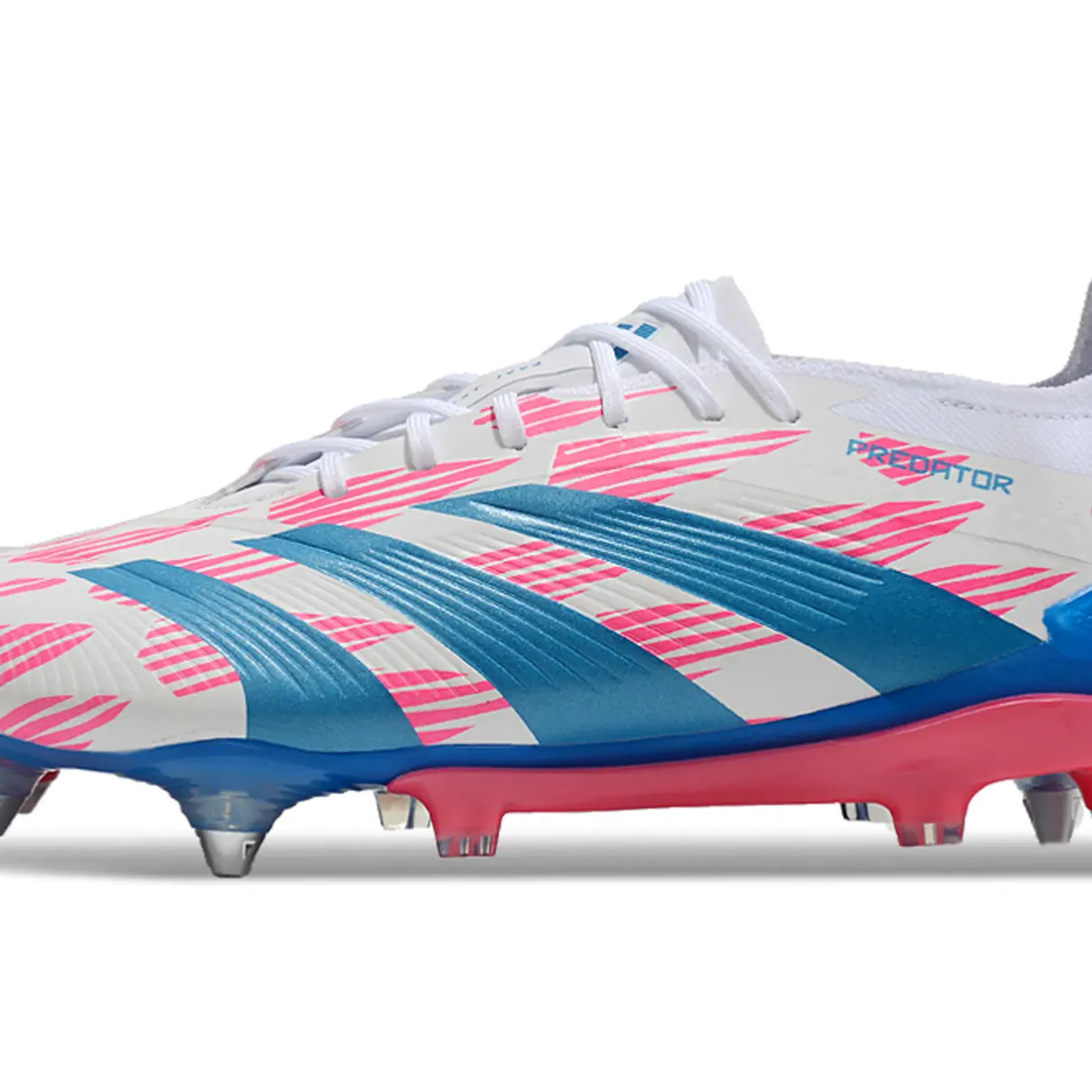 Com um visual vibrante e moderno, a Adidas Predator Elite branco, rosa e azul é a combinação perfeita entre ousadia e alto desempenho. Criada para atletas que não passam despercebidos, essa chuteira alia estilo autêntico com tecnologia de ponta para jogos de alto nível.
