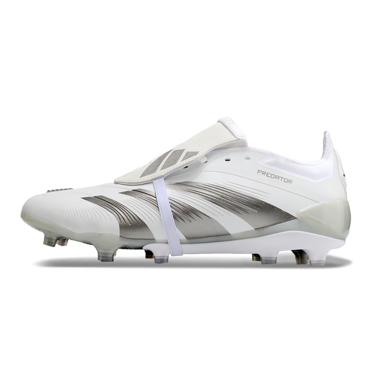O design todo branco proporciona uma estética clássica e versátil, tornando esta chuteira adequada para combinar com diferentes uniformes e estilos pessoais. O logotipo Predator e os detalhes adicionam um toque de sofisticação ao visual, garantindo que esta chuteira não apenas atenda às demandas técnicas, mas também destaque o estilo do jogador no campo.