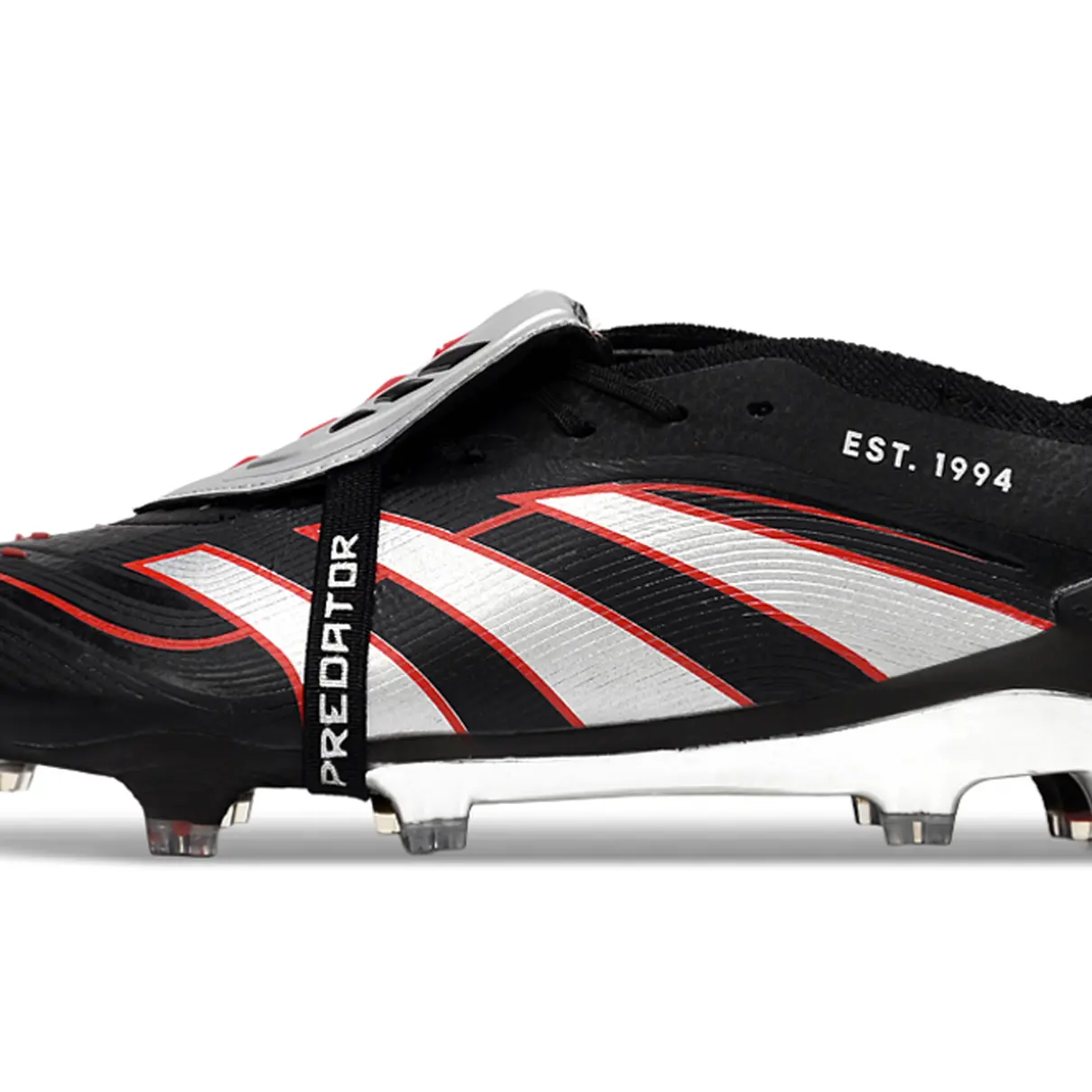 A Adidas Predator FT 30 Elite FG traz o equilíbrio perfeito entre inovação e estilo clássico. Seu cabedal em preto com detalhes em branco e vermelho oferece visual marcante, enquanto a tecnologia de controle garante toques afiados e jogadas precisas.