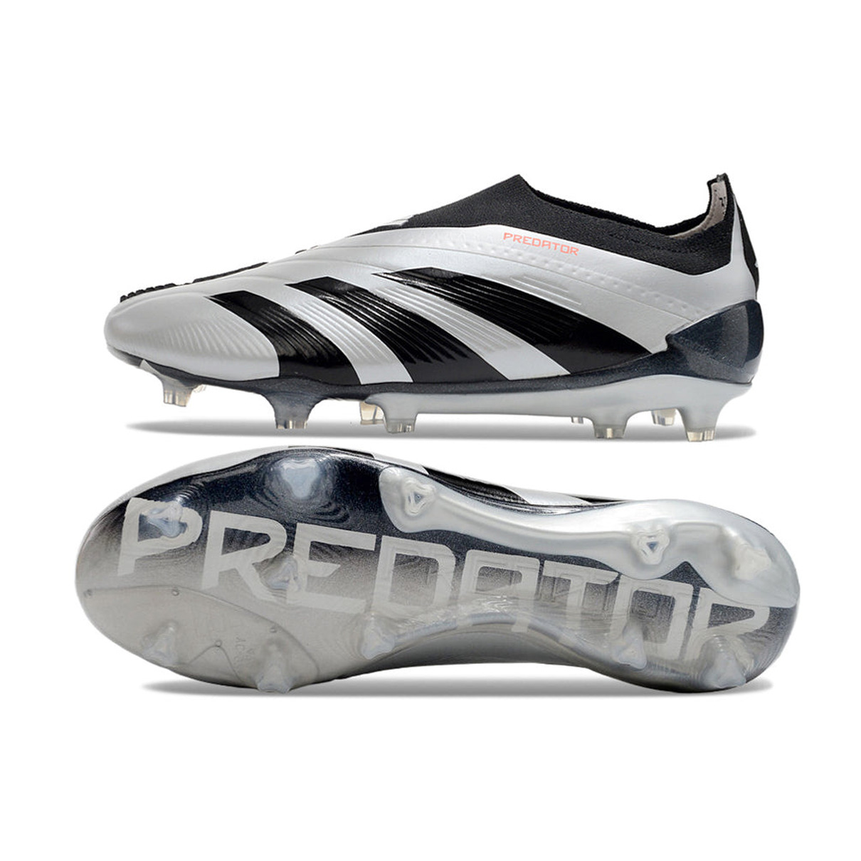 A Adidas Predator LL Elite FG Prata e Preta combina alta performance com uma estética sóbria e futurista. O prata metálico transmite modernidade e presença em campo, enquanto os detalhes pretos reforçam a seriedade de quem joga com precisão e frieza.