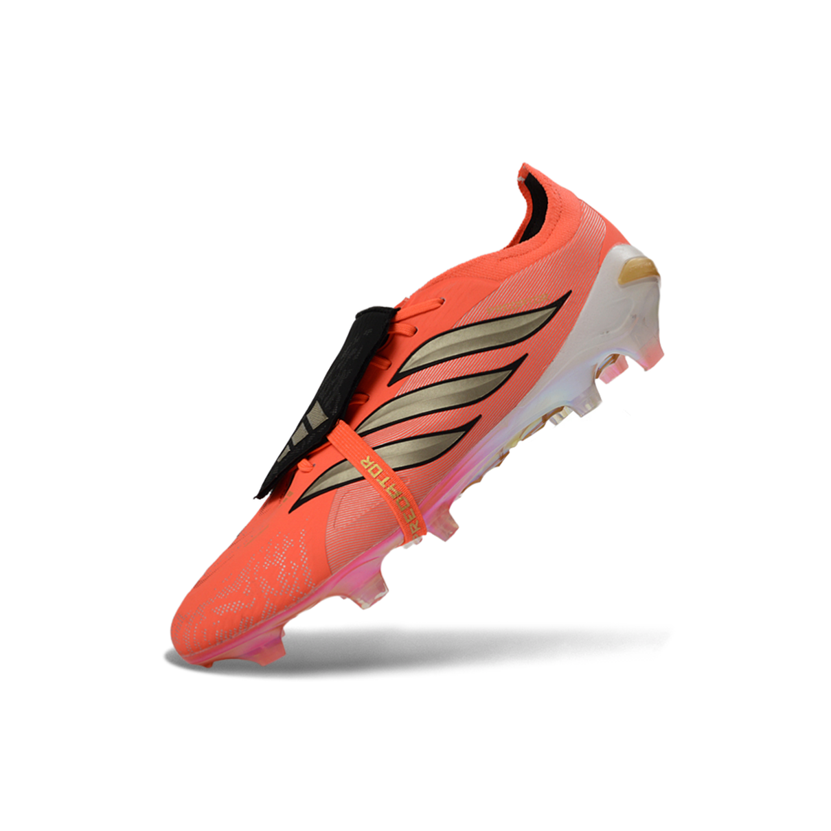 A Adidas Predator Tongue 26 Elite FG foi desenvolvida para jogadores que buscam controle absoluto da bola, precisão nos toques e desempenho elevado em campo. Parte da linha Predator, este modelo combina tecnologia avançada, conforto ergonômico e um visual vibrante nas cores laranja, dourado e preto — ideal para quem quer se destacar com estilo e performance dentro de campo.
