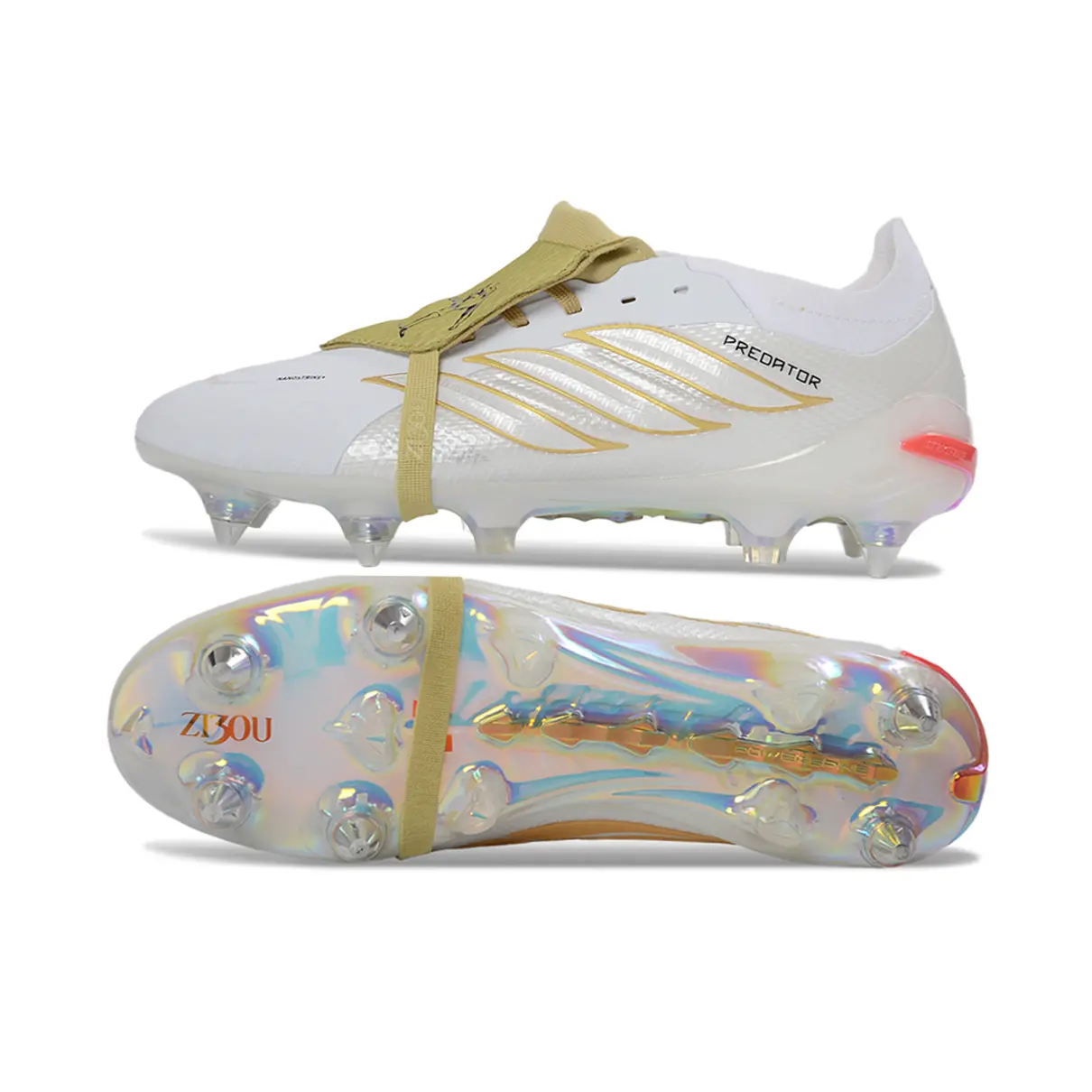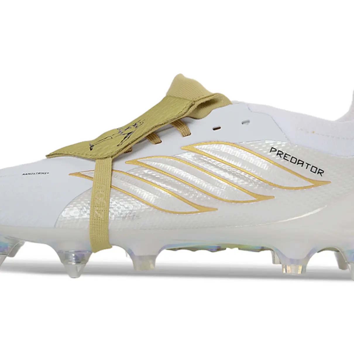 Chuteira Campo Adidas Predator 26 Elite Tongue SG – Branco e Dourado