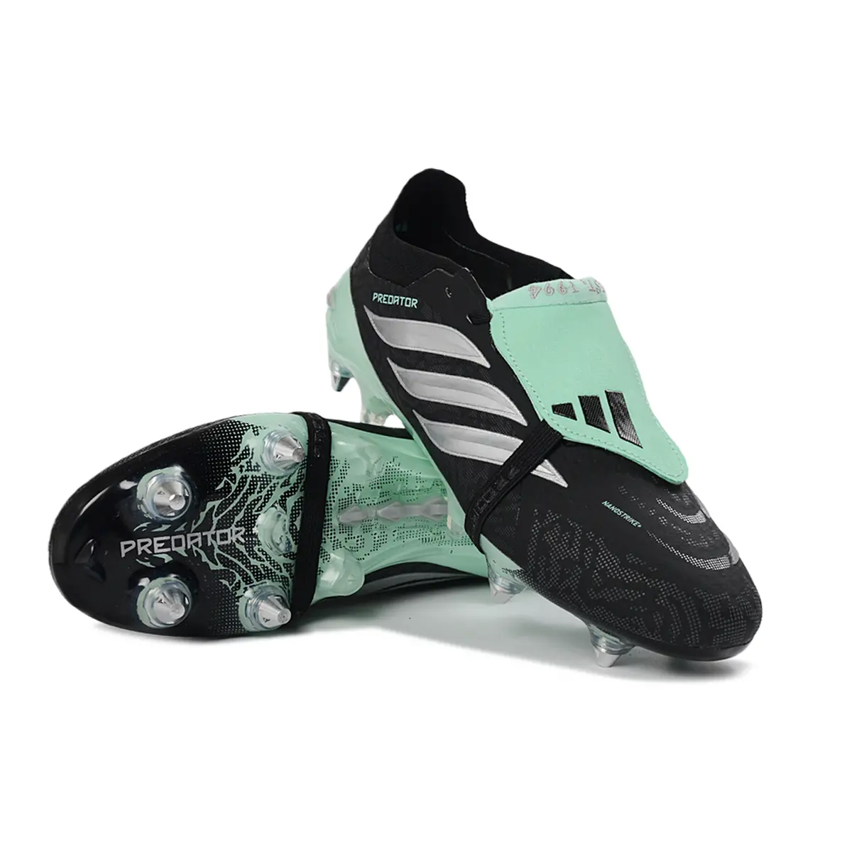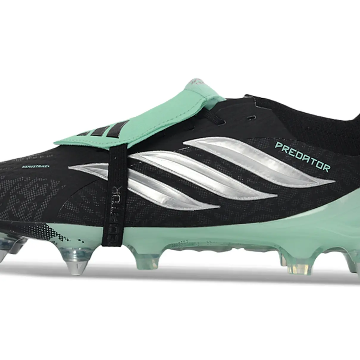 Tecnologia Strikeskin: Elementos de borracha em verde neon estrategicamente posicionados para maximizar o atrito com a bola, permitindo curvas agressivas e controle total em bolas paradas.