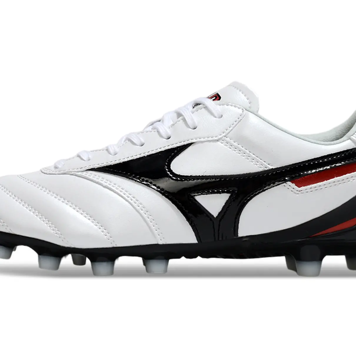A Mizuno Morelia DNA FG “Beta” representa o equilíbrio perfeito entre tradição e inovação, trazendo o visual clássico nas cores branca, preta e vermelha com acabamento refinado e detalhes modernos.