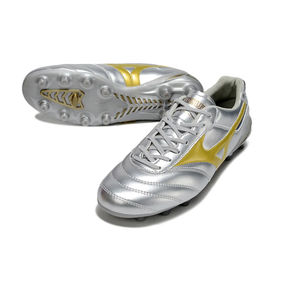 A Mizuno Morelia DNA FG "Platinum" – Prata e Dourada é a combinação perfeita entre tradição e sofisticação. Inspirada na lendária linha Morelia, essa edição especial entrega materiais premium, ajuste artesanal e visual luxuoso, feita para os jogadores que exigem excelência em todos os aspectos — do desempenho ao design.