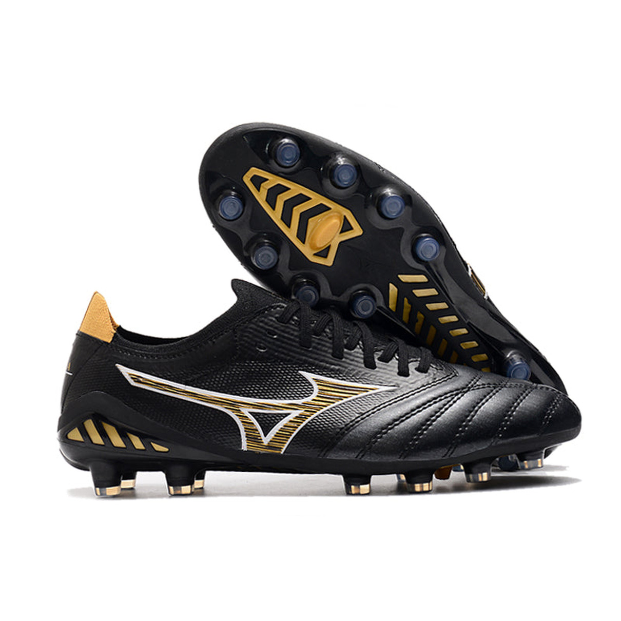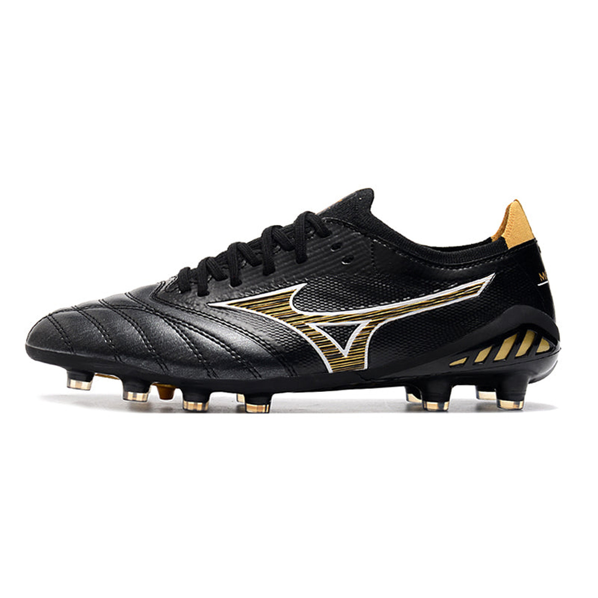 Chuteira de Campo Mizuno Morelia Neo 3 FG Preta e Dourada