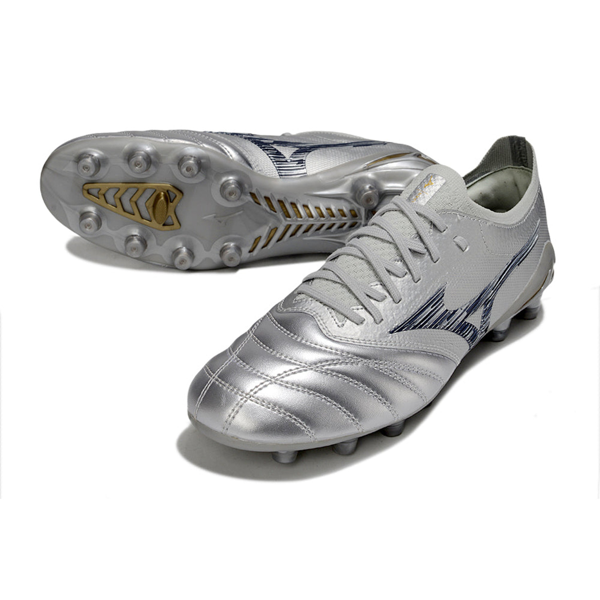 A Mizuno Morelia Neo 4 Beta FG Prata representa o equilíbrio perfeito entre tradição artesanal e inovação tecnológica. Projetada para jogadores que buscam leveza, precisão e toque refinado, essa chuteira é sinônimo de performance em alto nível nos gramados naturais.