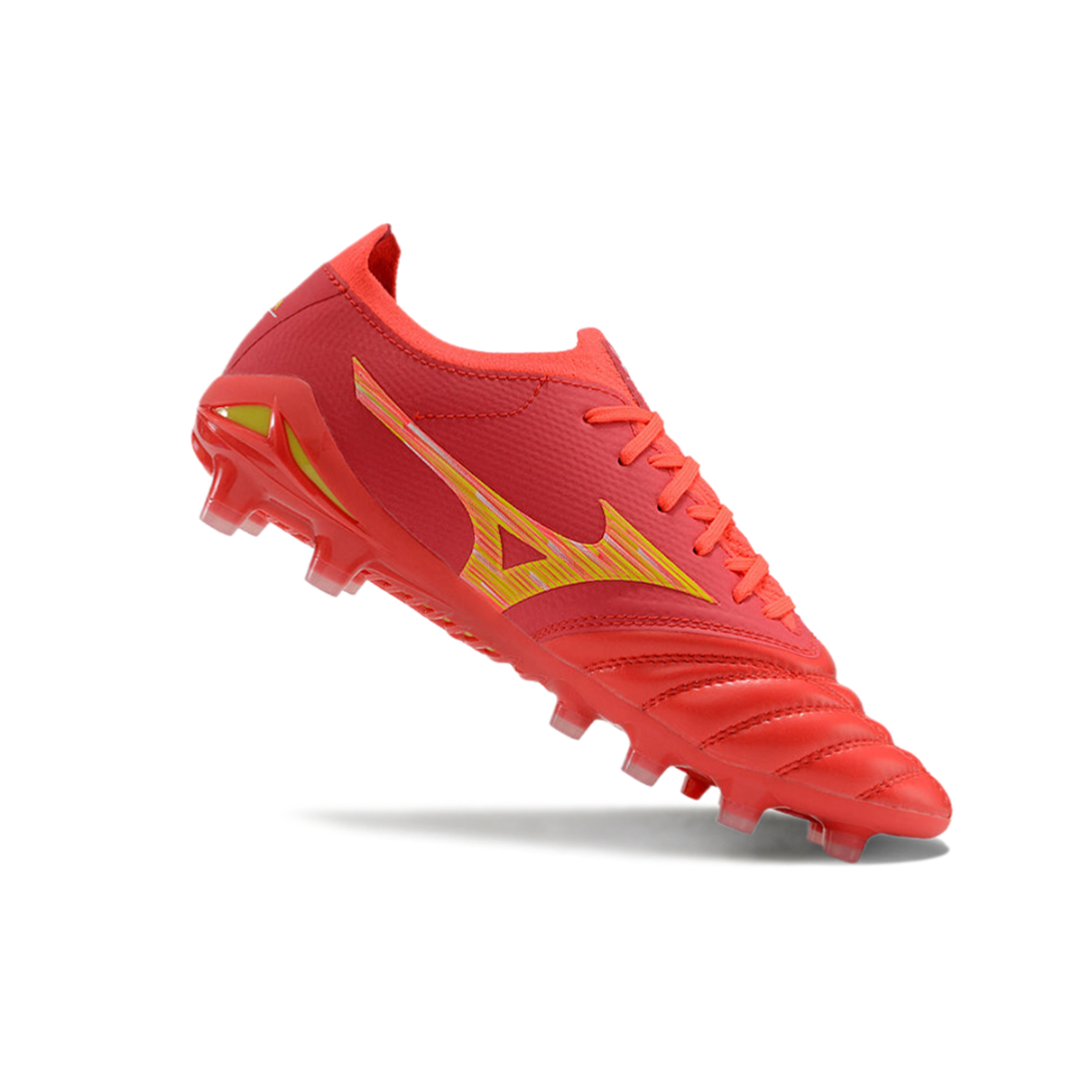 Chuteira de Campo Mizuno Morelia Neo 4 Beta FG Vermelha e Dourada "Release Pack"