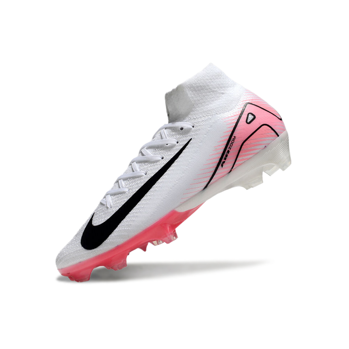 A Nike Air Zoom Mercurial Superfly 10 Elite FG na cor branca e rosa combina tecnologia de ponta com um design sofisticado para jogadores que buscam velocidade e precisão em campo.