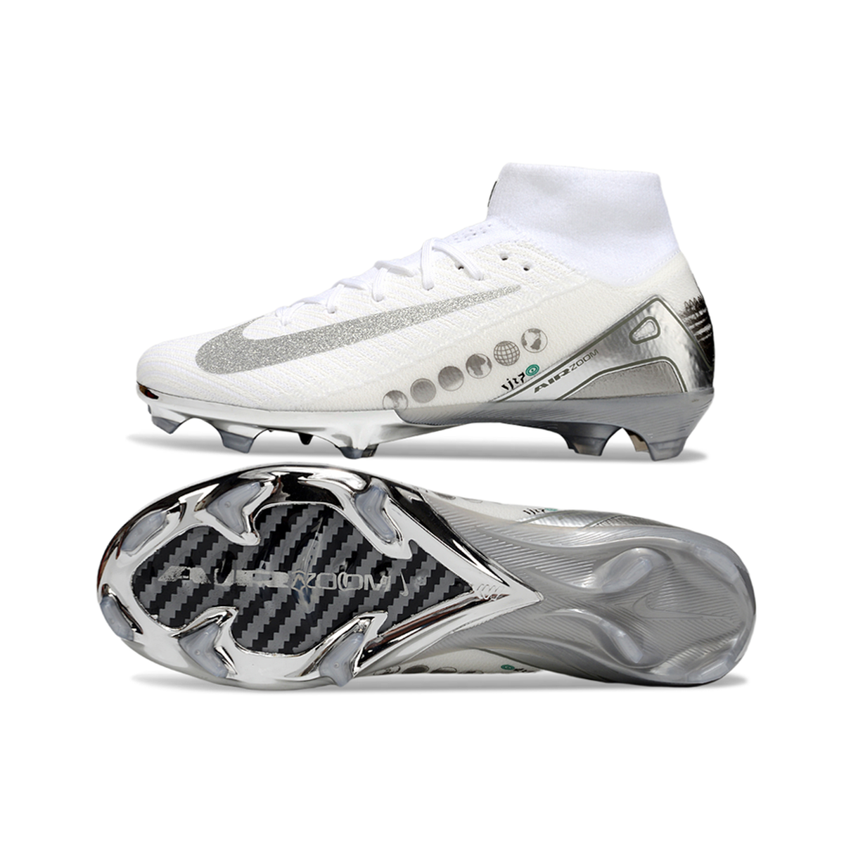 Chuteira Campo Nike Air Zoom Mercurial Superfly 10 Elite FG - Branco e Prata