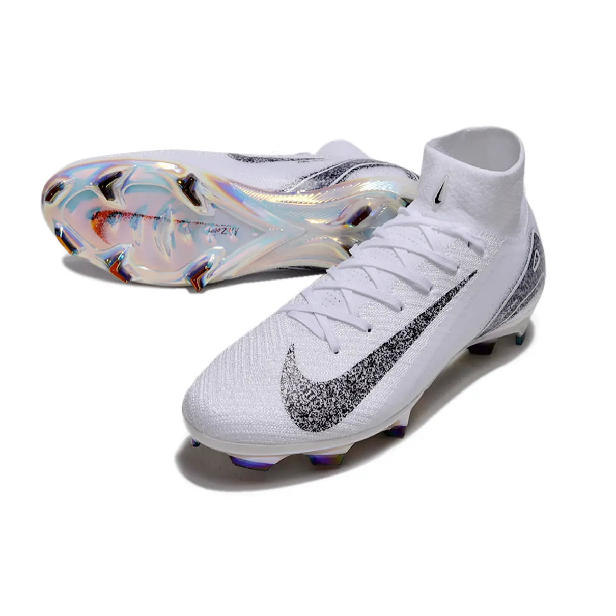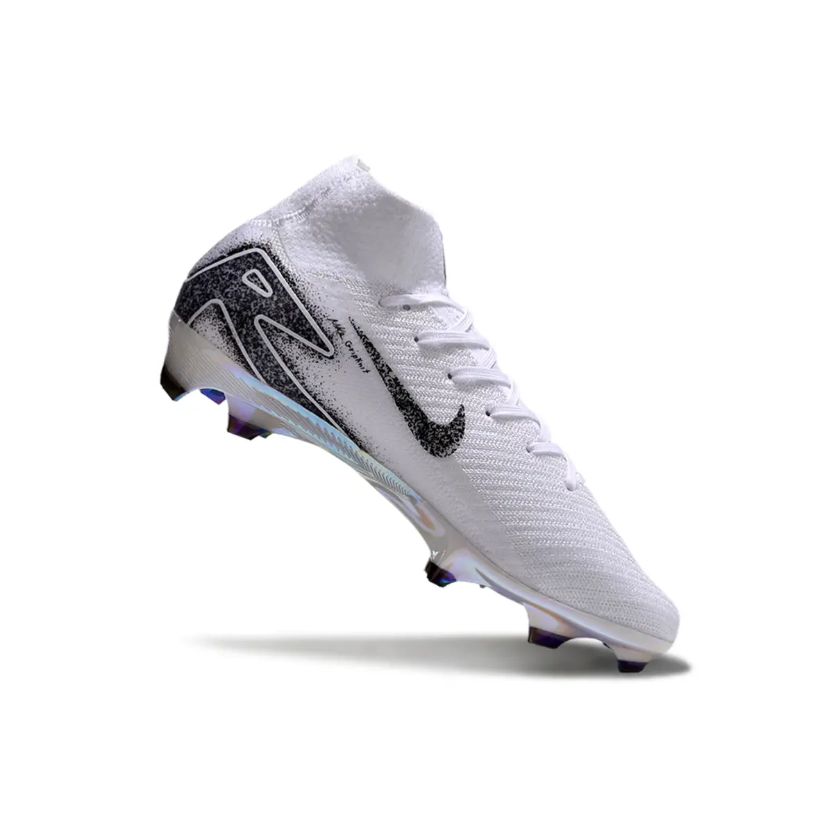 A nova Nike Air Zoom Mercurial Superfly 10 Elite FG chega com um visual clássico em branco e preto, mas com tecnologia de última geração para os jogadores mais exigentes.