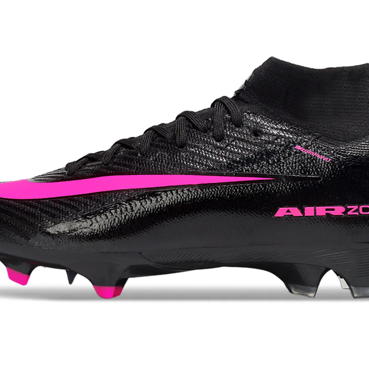 Com design marcante em preto e rosa, esta edição da Mercurial Superfly une inovação tecnológica e estilo arrojado, ideal para atletas que querem elevar seu jogo ao mais alto nível.