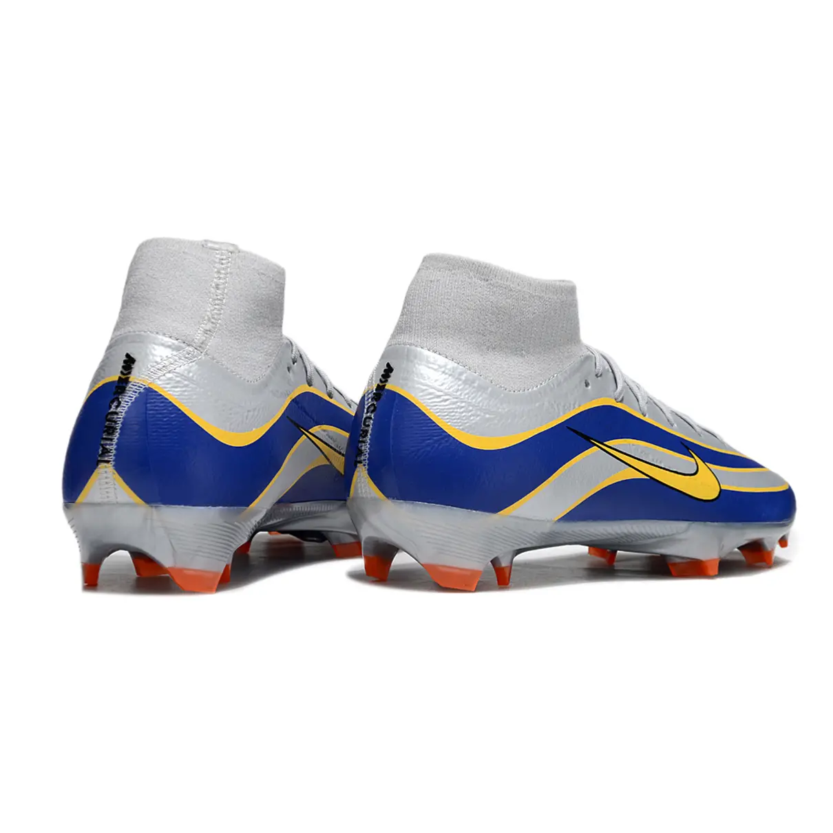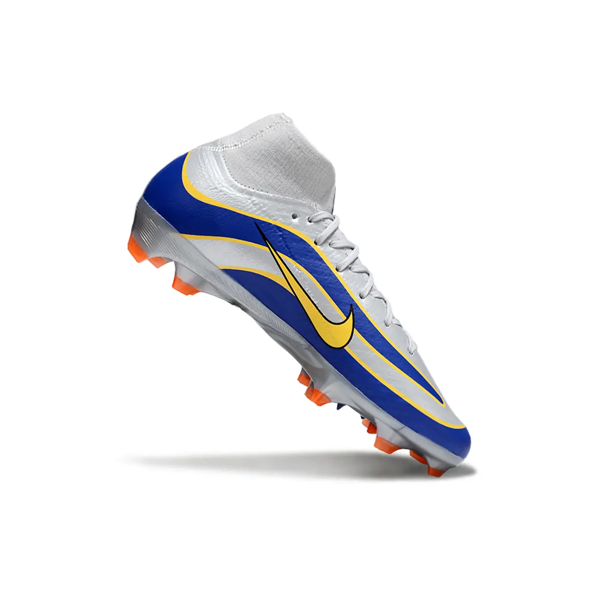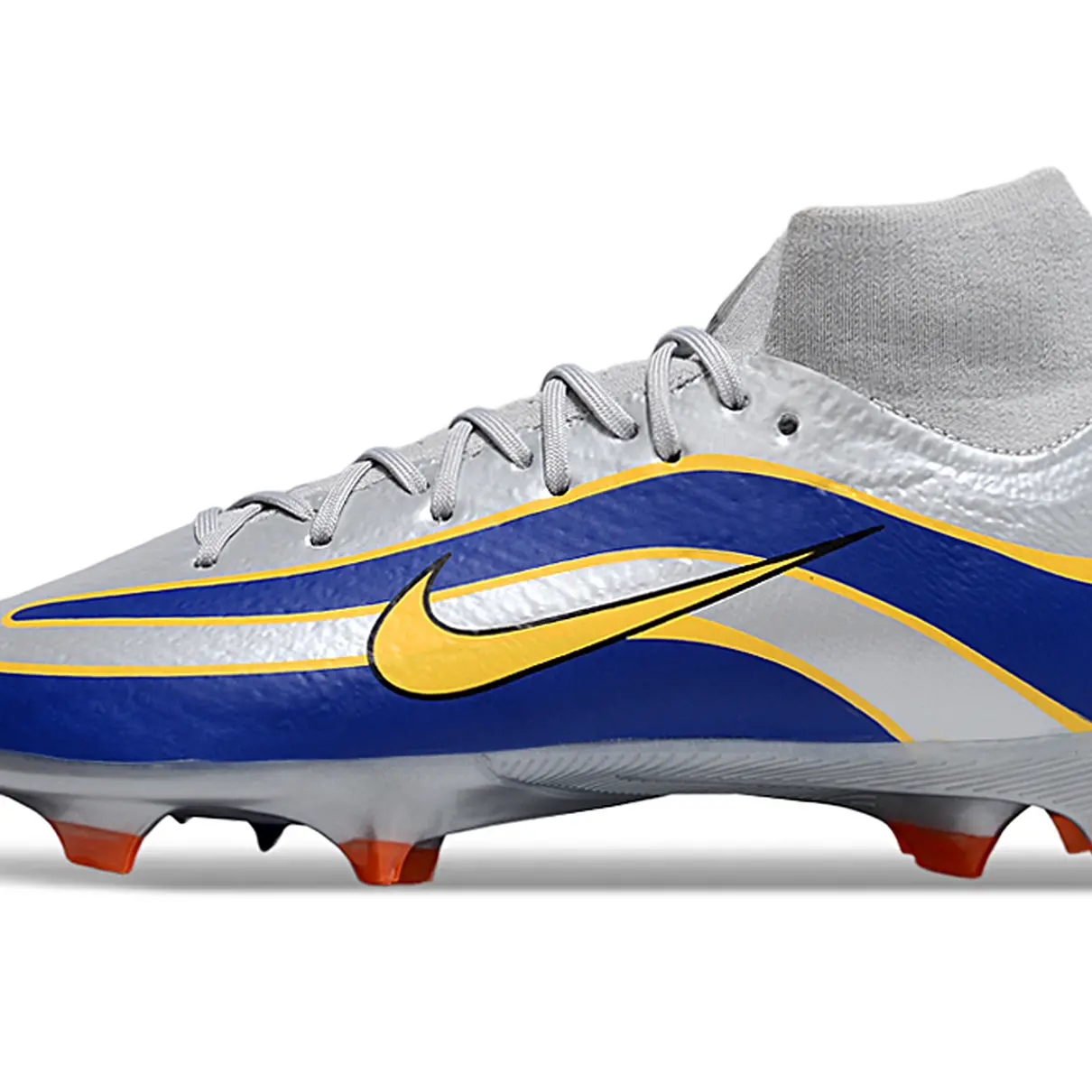 A Nike Air Zoom Mercurial Superfly 10 Elite FG – Prata, Azul e Amarelo combina a mais alta tecnologia da Nike com um visual ousado e futurista. Feita para jogadores que vivem no limite da velocidade, essa chuteira entrega amortecimento responsivo, tração agressiva e ajuste perfeito, tudo isso em um design que brilha em campo.