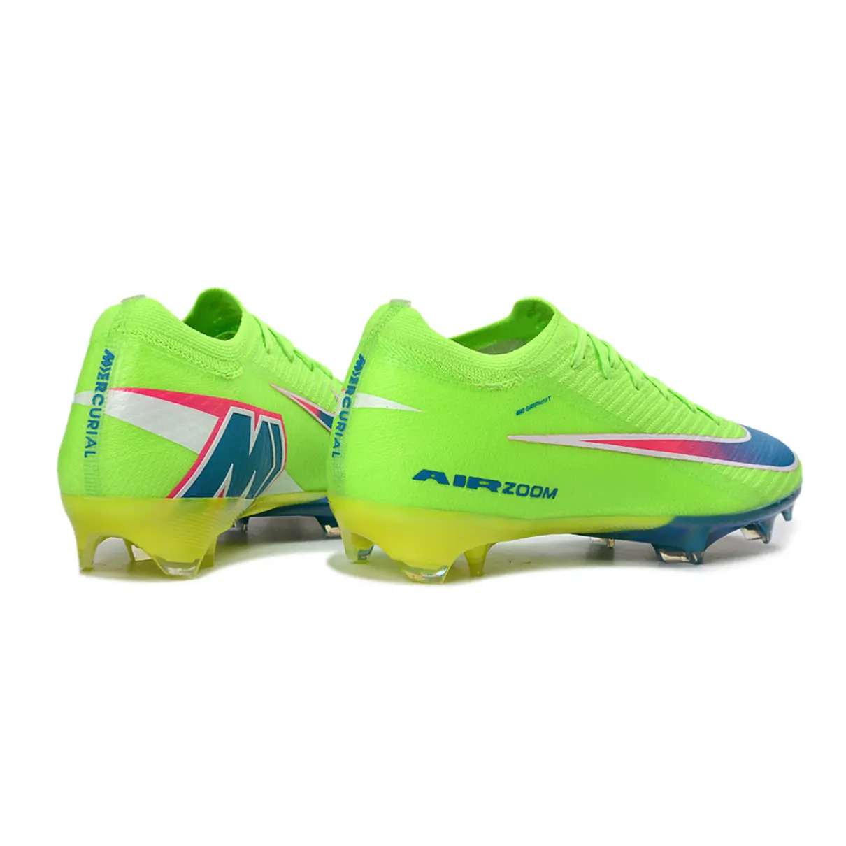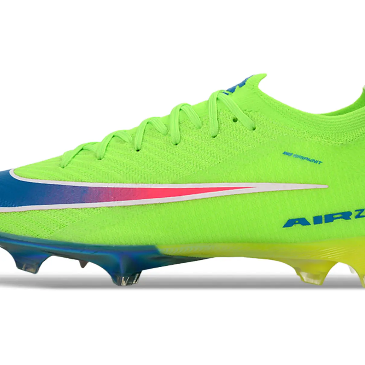 A Nike Air Zoom Mercurial Vapor 16 Elite FG Verde Florescente e Azul é uma chuteira de alto desempenho criada para jogadores que dependem de velocidade, explosão e controle de bola em gramados naturais. Com um visual chamativo em verde fluorescente e azul, o modelo segue a tradição da linha Mercurial de oferecer leveza e máxima aceleração.