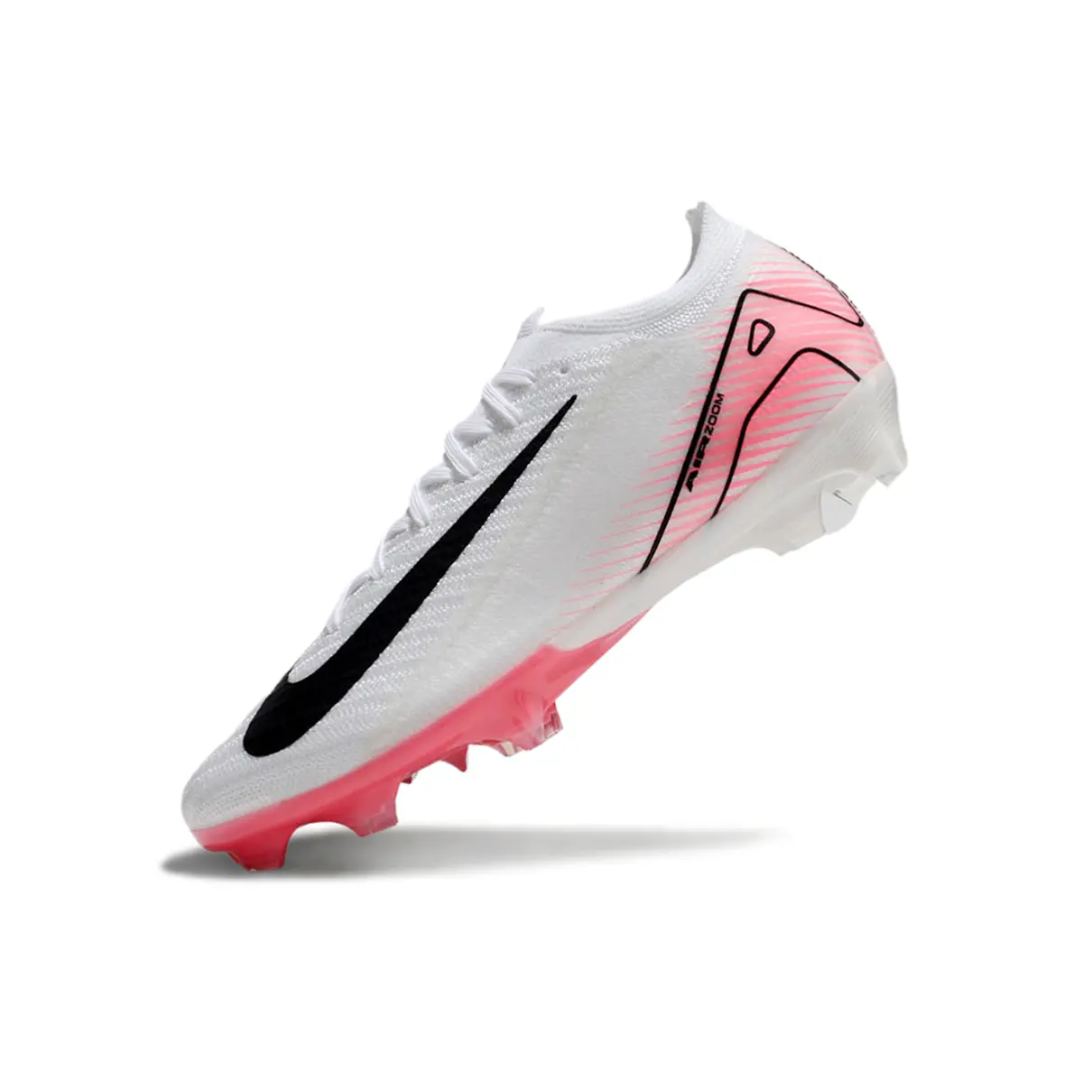 A Nike Air Zoom Mercurial Vapor 16 Elite FG chega com um visual branco e rosa vibrante, feita para os jogadores que não passam despercebidos e querem explodir em campo com desempenho e identidade.