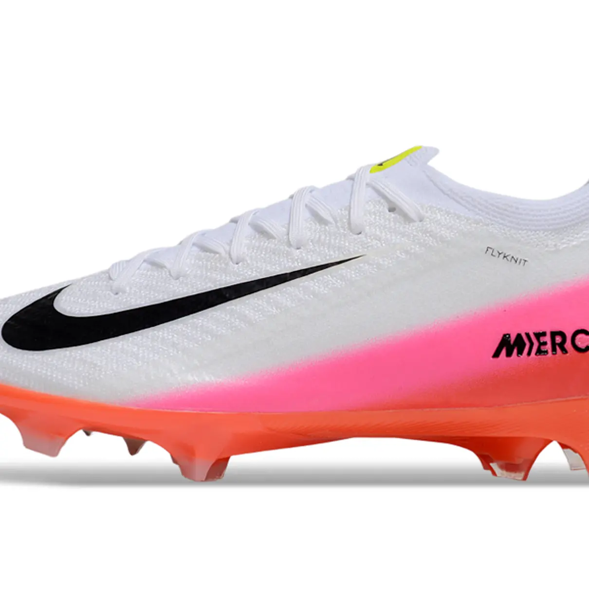 A nova Nike Air Zoom Mercurial Vapor 16 Elite FG chega em uma colorway vibrante que mistura branco puro com rosa e laranja neon, combinando inovação com personalidade nos gramados.