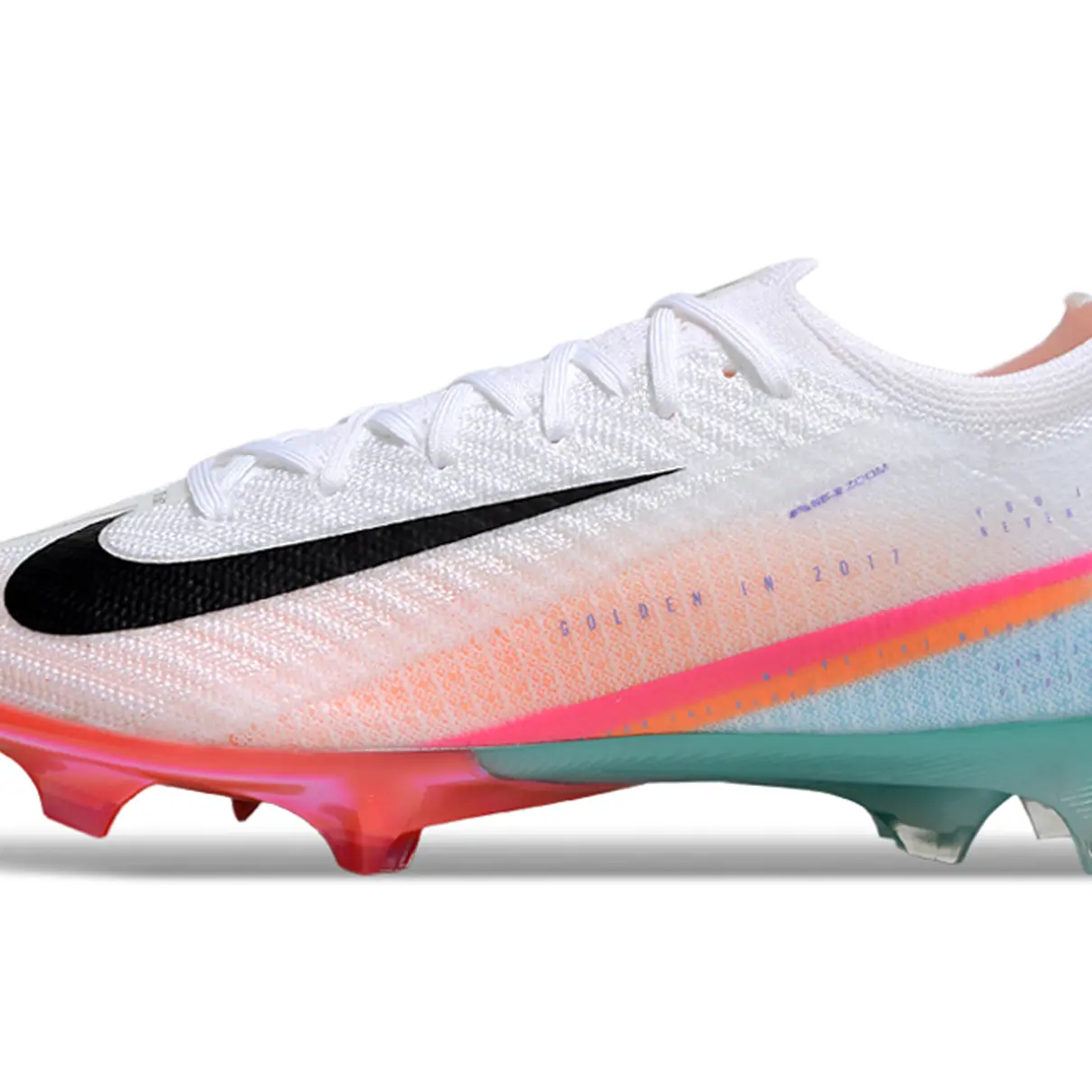 A Mercurial Vapor 16 Elite FG chega com um design ousado em ⚪ branco, ???? rosa e ???? verde, unindo visual marcante e desempenho de elite. Criada para quem faz a diferença com explosão e controle em campo.