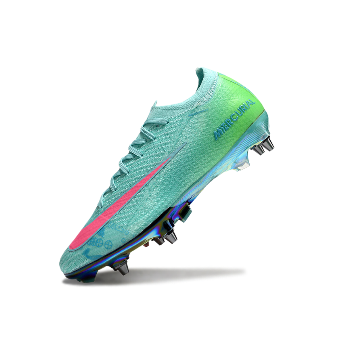 Chuteira Campo Nike Air Zoom Mercurial Vapor 16 Elite Trava Mista Verde e Rosa "Cosmic Speed"