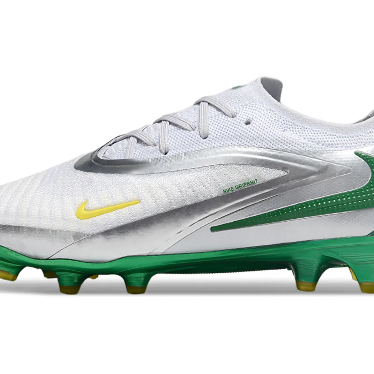 A Chuteira Campo Nike Phantom GX 6 Elite FG Branco, Prata e Verde foi desenvolvida para jogadores que buscam controle de bola preciso, agilidade e desempenho elevado em campos de grama natural. Com visual moderno nas cores branco, prata e verde, esse modelo combina estilo marcante com tecnologia desempenho para quem quer dominar as jogadas e se destacar em campo.