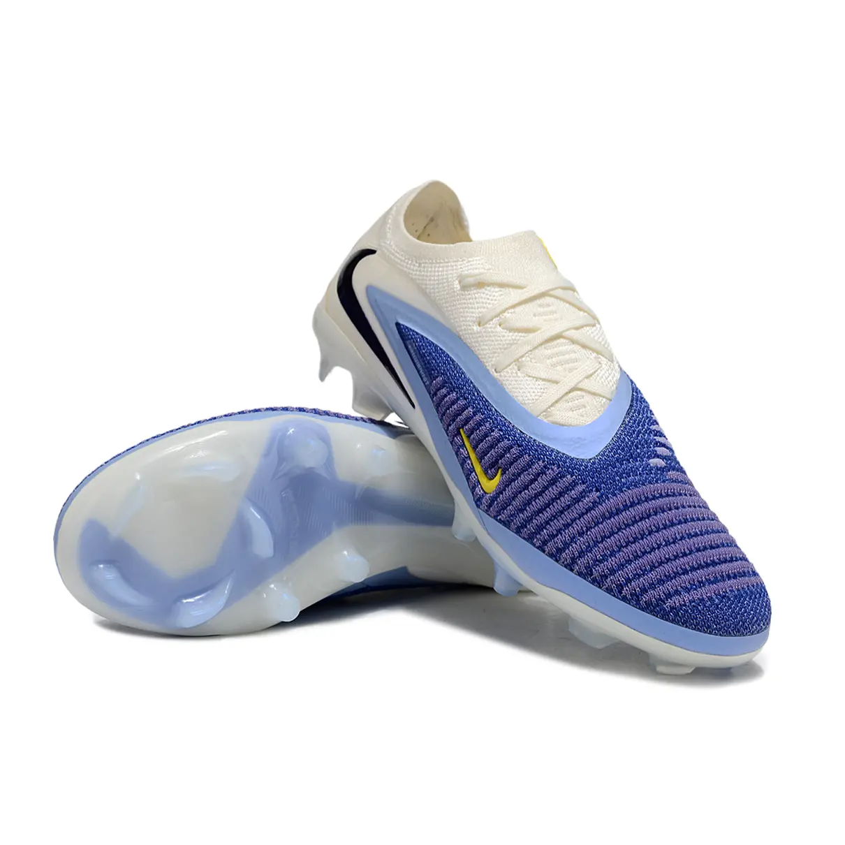 A Chuteira Campo Nike Phantom GX 6 Elite FG “Fear Nothing” Branco, Azul e Amarelo foi desenvolvida para jogadores que enfrentam cada partida com confiança, agressividade e alto desempenho. Essa versão “Fear Nothing” combina um visual vibrante com tecnologia avançada para oferecer controle preciso, estabilidade e velocidade em gramados de grama natural.