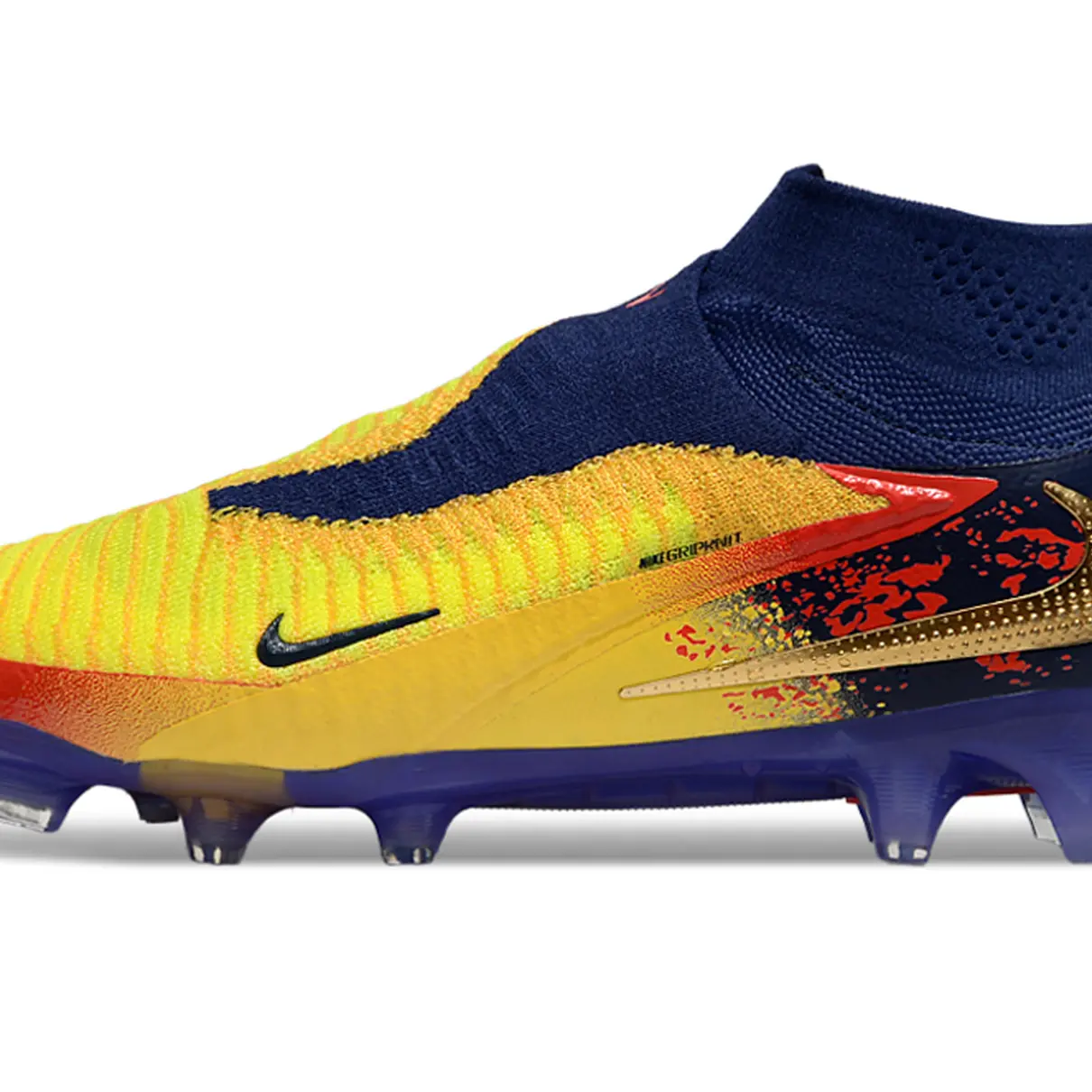 A Chuteira Campo Nike Phantom GX 6 DF Elite FG Azul, Amarelo e Vermelho foi desenvolvida para jogadores que buscam controle de bola preciso, estabilidade dinâmica e alto desempenho em campos de grama natural. Com visual vibrante nas cores azul, amarelo e vermelho e equipada com a tecnologia Dynamic Fit (DF), esse modelo oferece ajuste integrado ao pé para maior suporte e confiança em cada arrancada, drible e finalização.