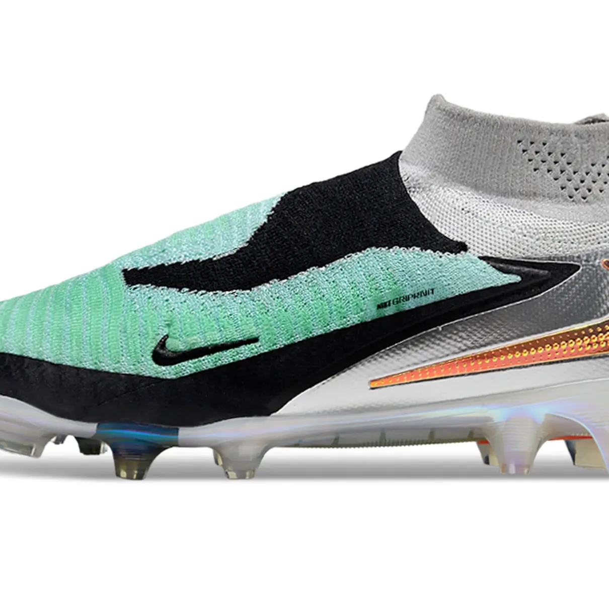 A Chuteira Campo Nike Phantom GX 6 DF Elite FG Verde, Preto, Prata e Laranja foi desenvolvida para jogadores que buscam controle de bola preciso, estabilidade dinâmica e desempenho elevado em campos de grama natural. Com visual marcante nas cores verde, preto, prata e laranja e equipada com a tecnologia Dynamic Fit (DF), esse modelo une estilo impactante e tecnologia avançada para levar seu jogo ao próximo nível.