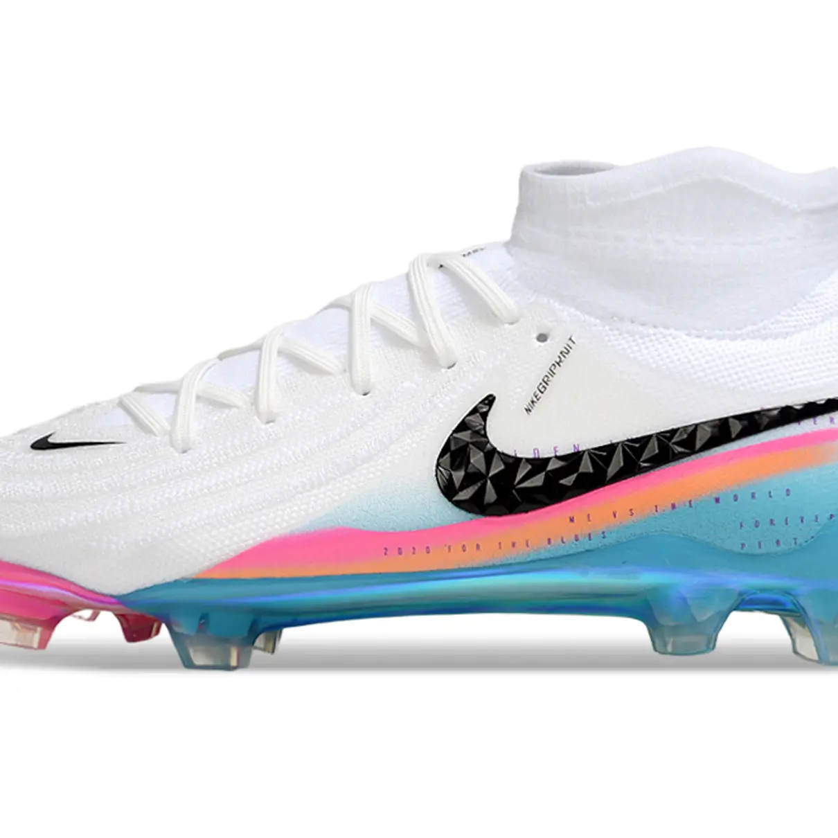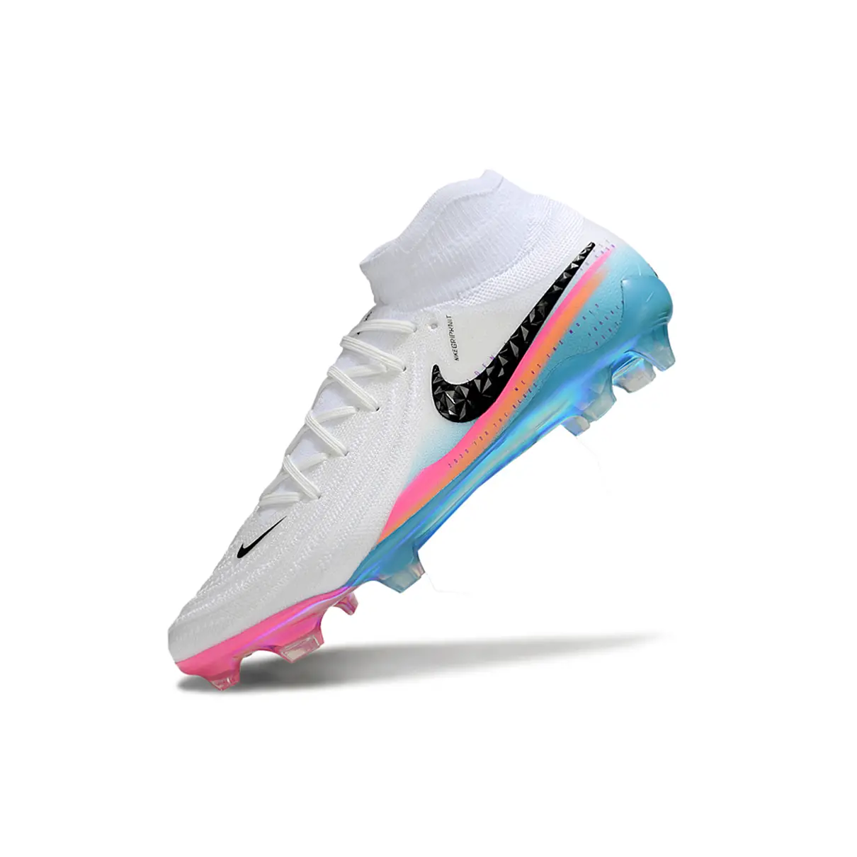 A Nike Phantom Luna 2 Elite FG é a combinação perfeita entre inovação e personalidade. Em um visual marcante com tons de branco, rosa e azul, essa chuteira foi desenvolvida para atletas que decidem com classe — do passe milimétrico ao chute certeiro.