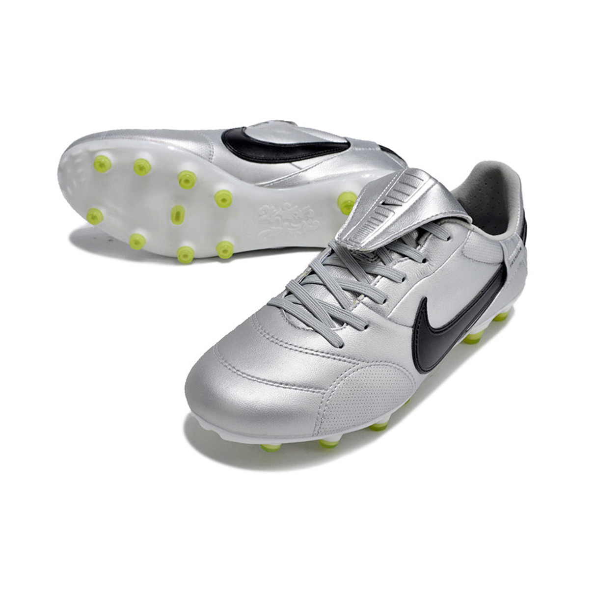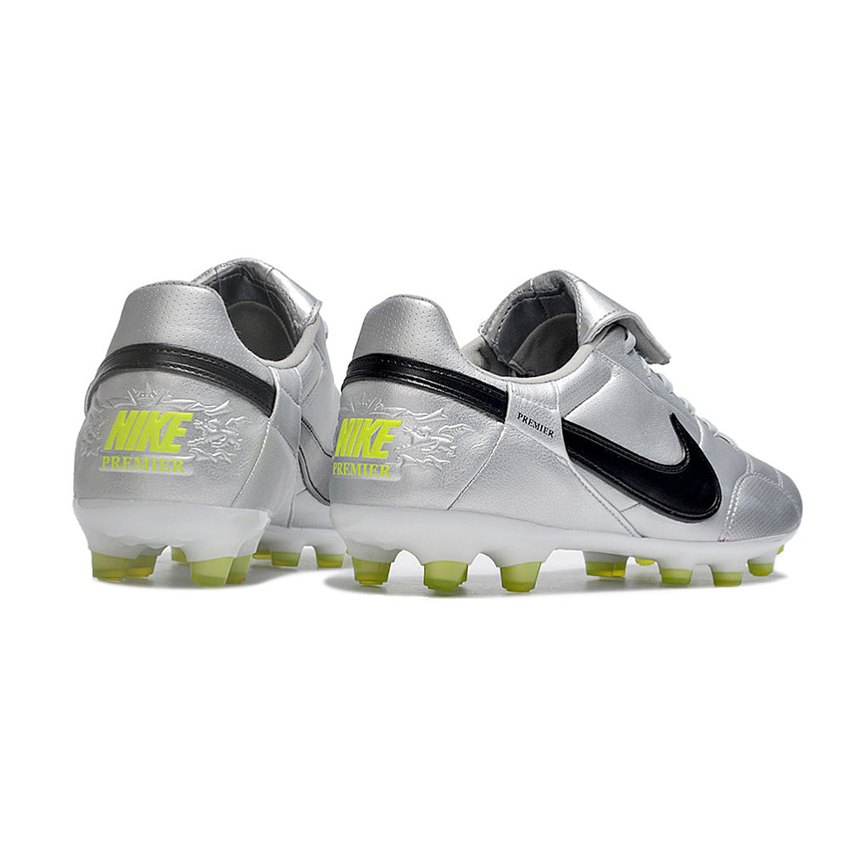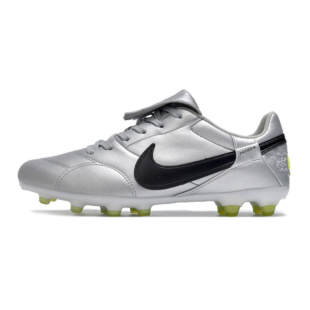 A Chuteira de Campo Nike Premier 3 FG em prata e preto é uma escolha elegante para os jogadores que valorizam a tradição, qualidade e desempenho excepcionais. Projetada para campos de grama natural, esta chuteira oferece uma combinação de estilo clássico e tecnologia moderna para elevar o seu jogo.